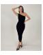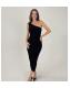 AX Paris Black Velvet One Shoulder Sparkly Midi Dress