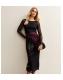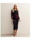 Black Flower Ruched Mesh Midi Dress