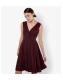 Apricot Burgundy Lurex Pleated Skater Dress