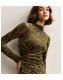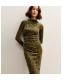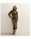 Light Khaki Velvet Floral Devore Long Sleeve Midaxi Dress