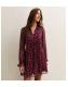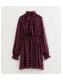 Red Rose Print Chiffon Pussybow Neck Mini Dress