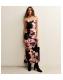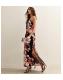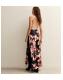 Black Floral Print Low Back Midi Dress