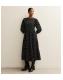 Black Spot Crinkled Tiered Midi Dress