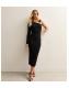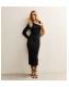 Black Single Sleeve Abstract Buckle Midi Dress