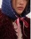 Reclaimed Vintage crochet mittens and bonnet with velvet trim in blue
