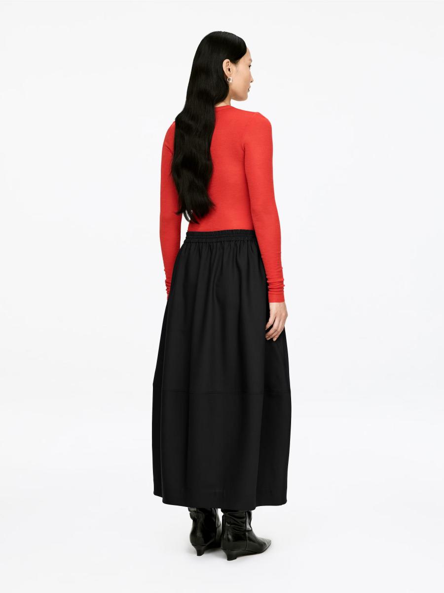 Barrel-shaped midi skirt with an elasticated waist, drawstring fastening, and side pockets. The style contains 43% RWS wool (TE-00047206). Products certified to the Responsible Wool Standard (RWS) contain wool fiber from farms independently certified to animal welfare and land management requirements.ARKET/Women's clothes/Women's skirts