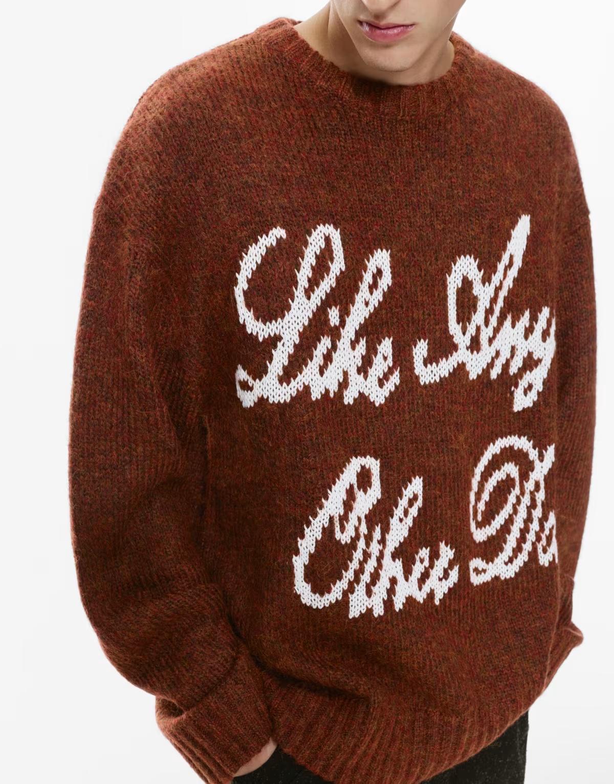 Text knit pattern on front
