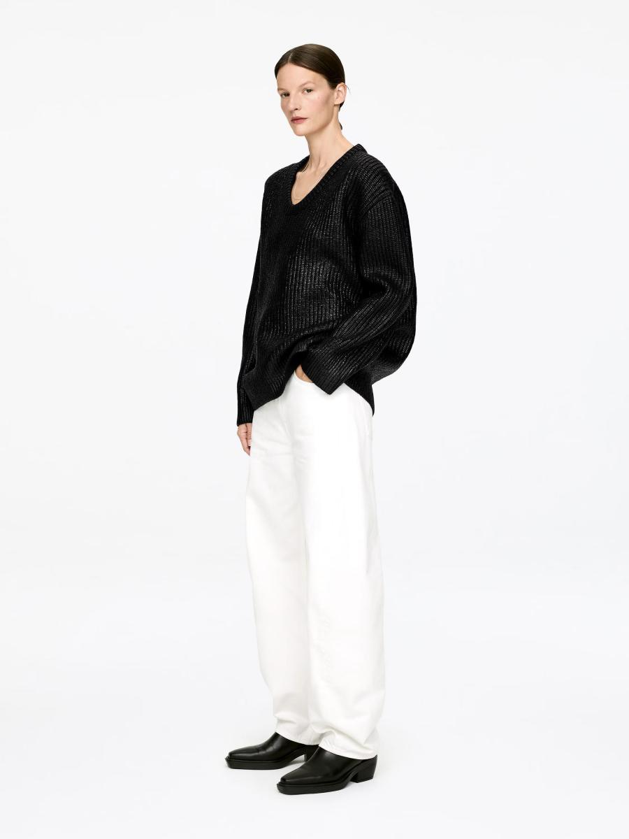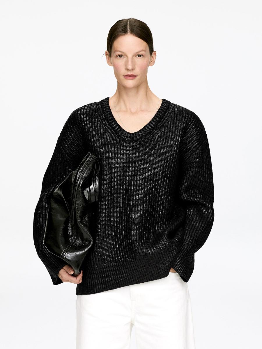 Jumper knitted from pure wool with an all-over coating. Designed with a soft V-neck and ribbed trims. Loose fit. The style contains 100% RWS wool (TE-00047206). Products certified to the Responsible Wool Standard (RWS) contain wool fiber from farms independently certified to animal welfare and land management requirements.ARKET/Women's clothes/Women's knitwear