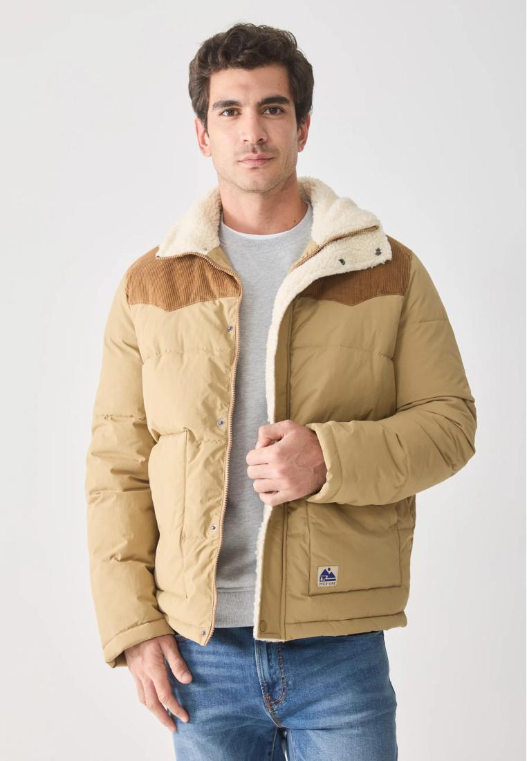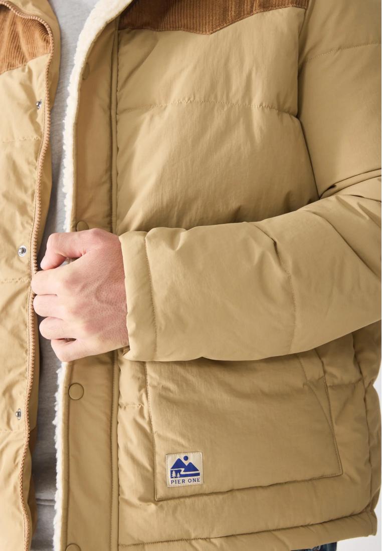 Outer fabric material: 100% nylonFilling: 98% cotton, 2% elastaneLining: 100% polyesterPadding type: Warm paddingDetails
