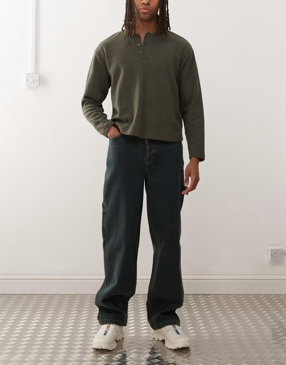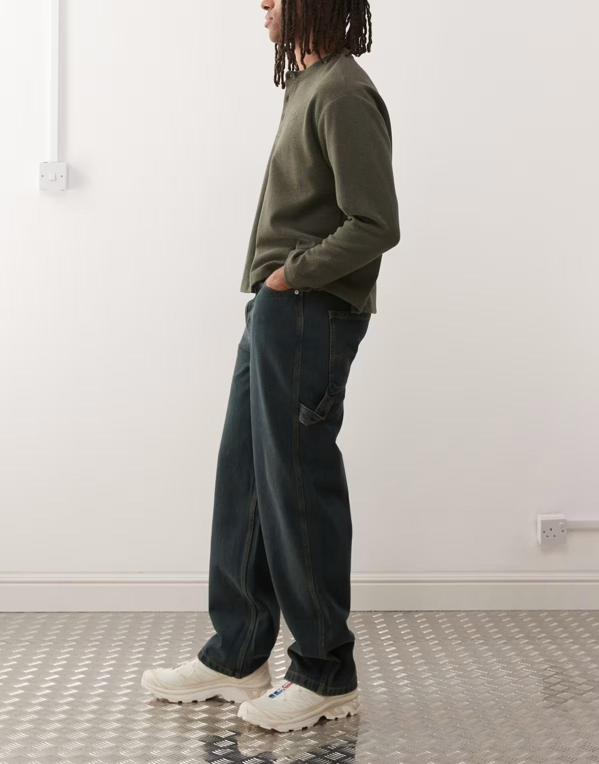 COLLUSION X011 carpenter mid rise jean in grunge green wash