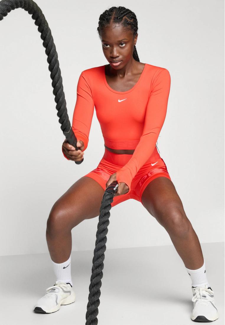 Technology: Dri-Fit (Nike) wicks away moisture, is breathable and quick-drying Technology: Pro (Nike) due to the special material composition, moisture is quickly wicked away from the skin for a dry feel, the light compression effect supports the muscles Thumb loopsSport: Training & fitnessWaistband: ElasticatedNeckline: Crew neckSleeve cuffs: ElasticPattern: PrintDetails: Elasticated waistQualities: Breathable, moisture wicking, quick-drying