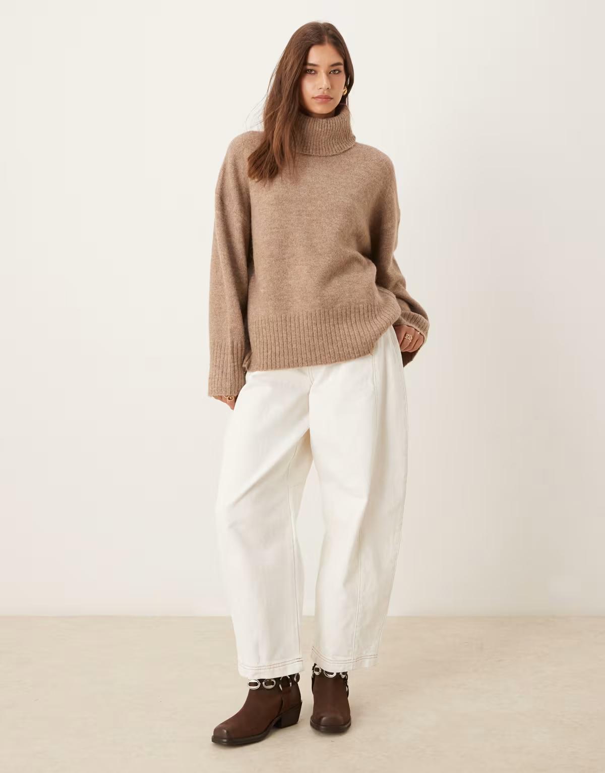 Gina Tricot high neck long sleeve knitted wool alpaca sweater in beige melange
