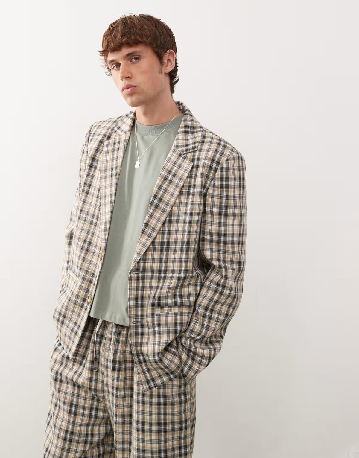 COLLUSION 90s relaxed blazer co-ord in mixed check