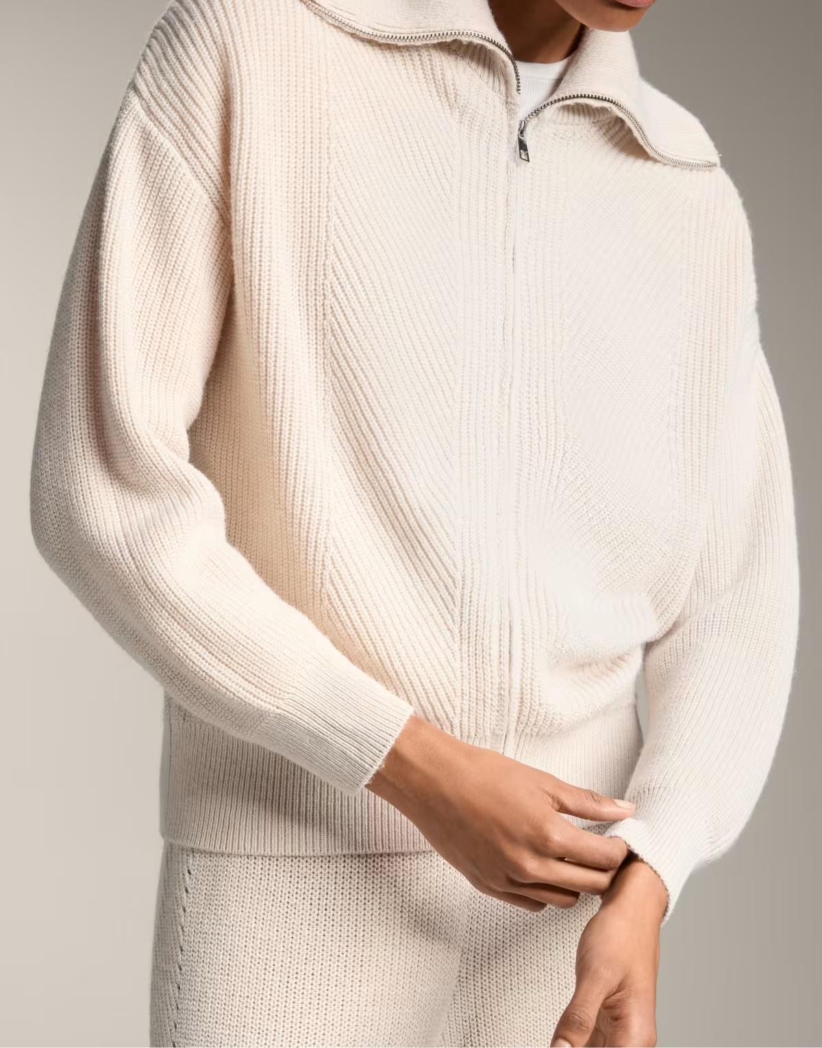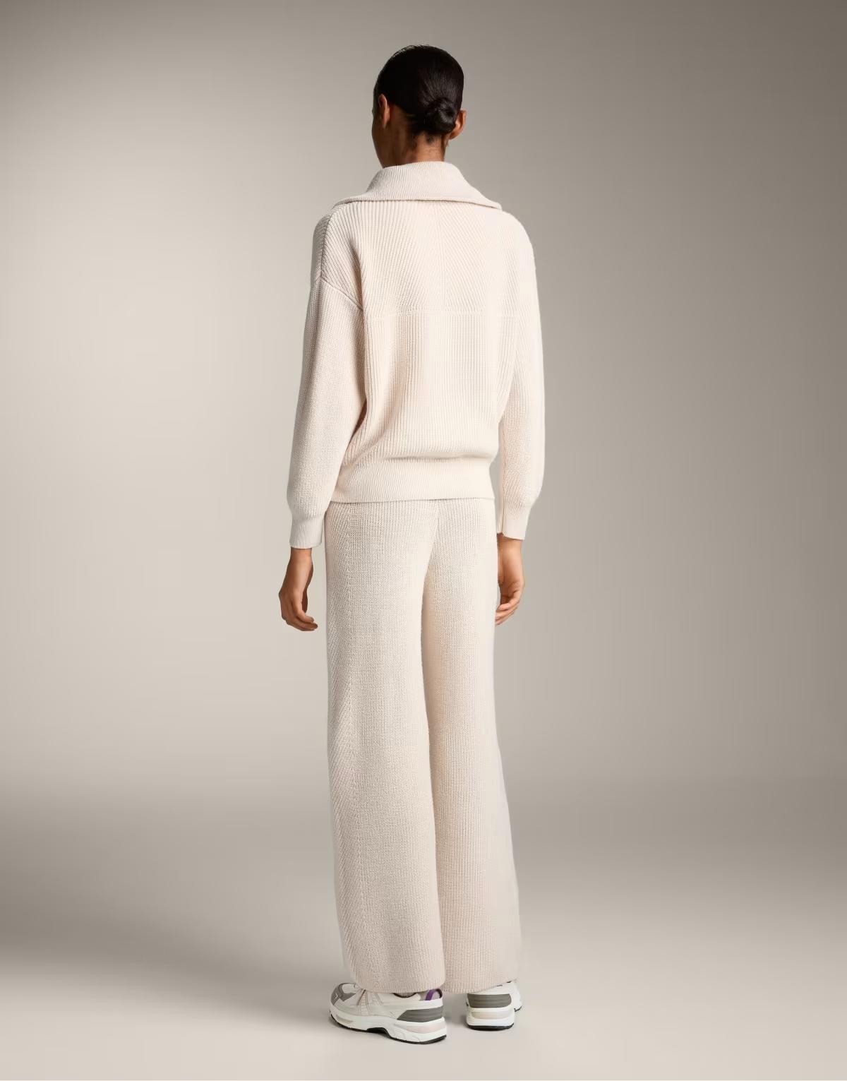 OYSHO Knit jacket with lapel collar in ivory ecru