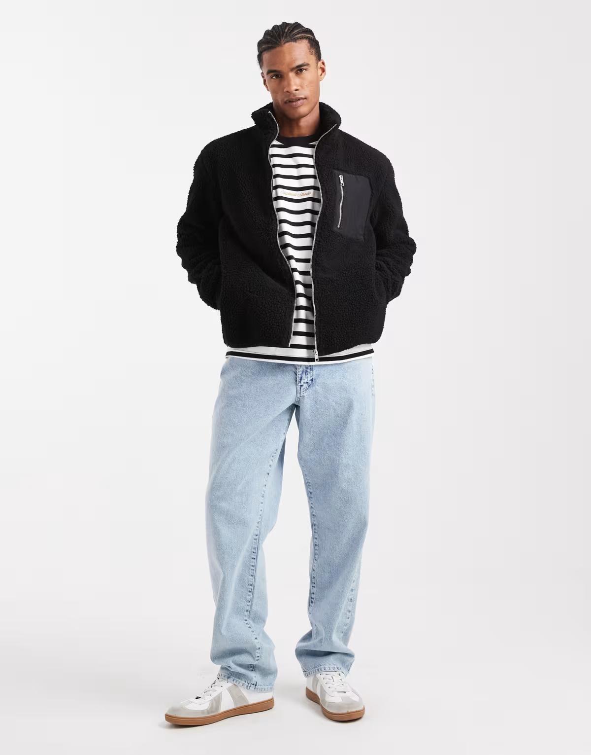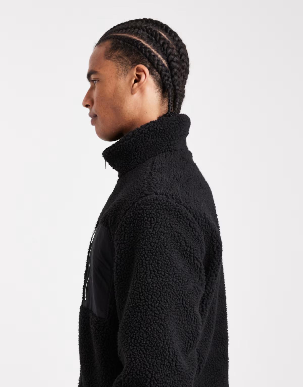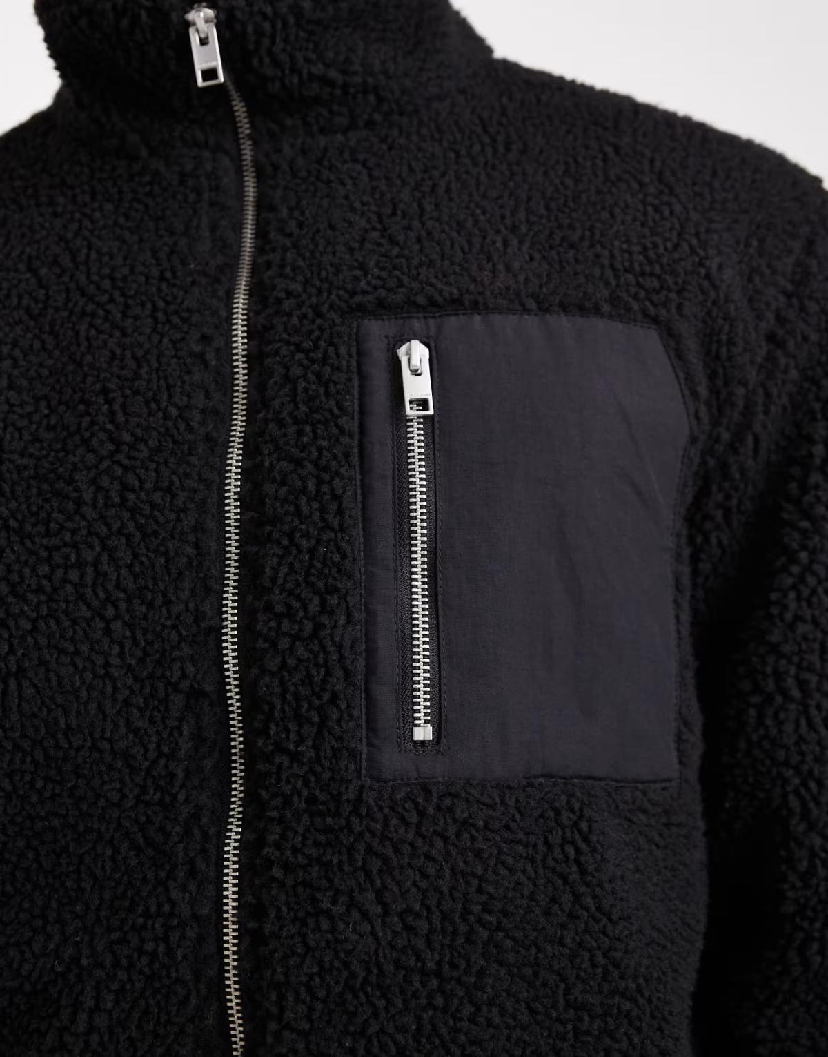 Jack & Jones fleece jacket with pocket in black