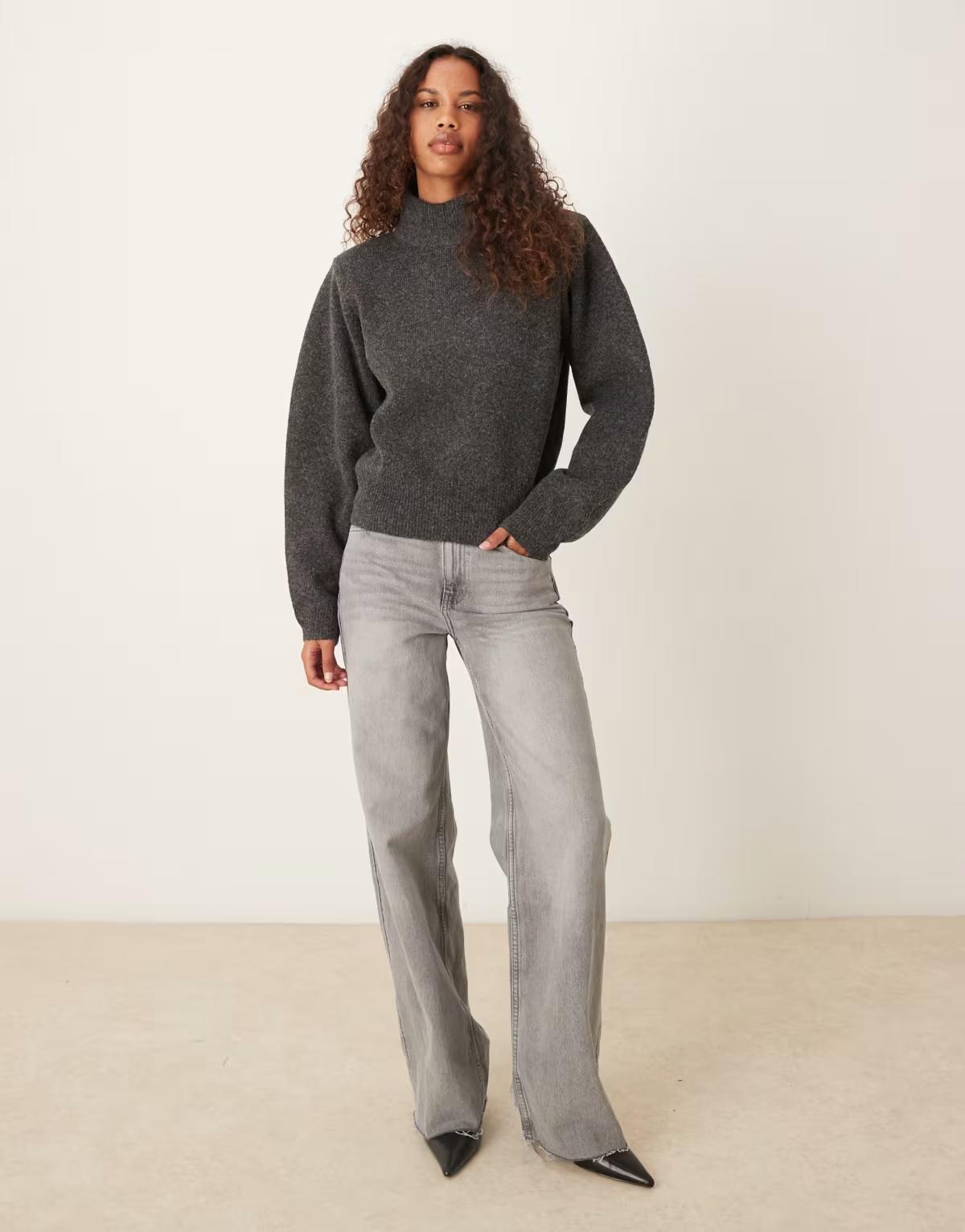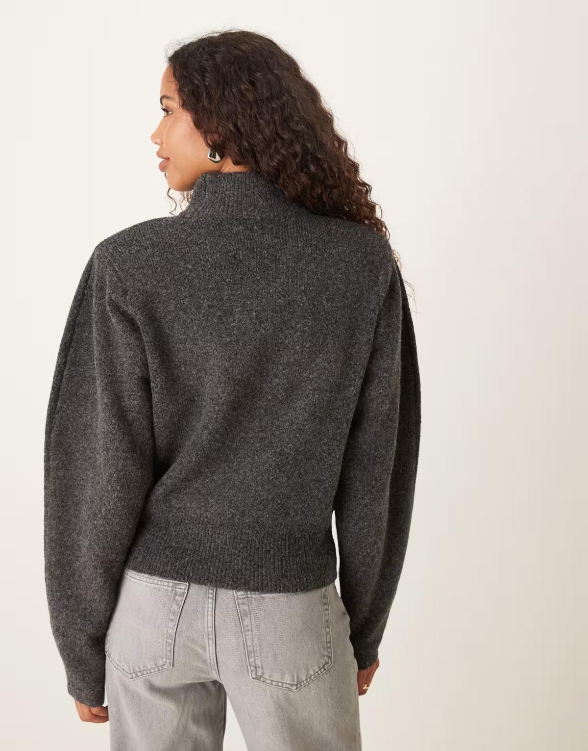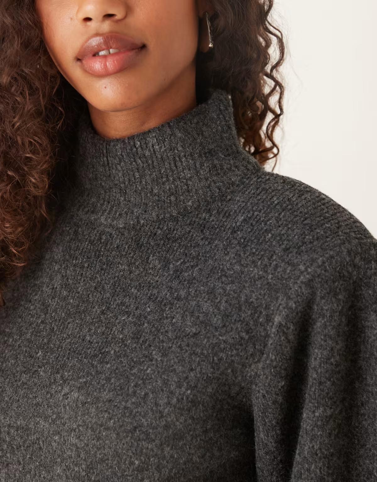 ASOS DESIGN shoulder pad extreme sleeve waisted jumper in charcoal