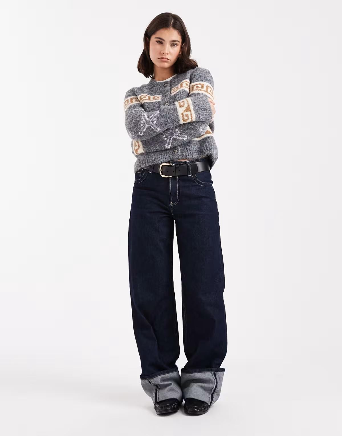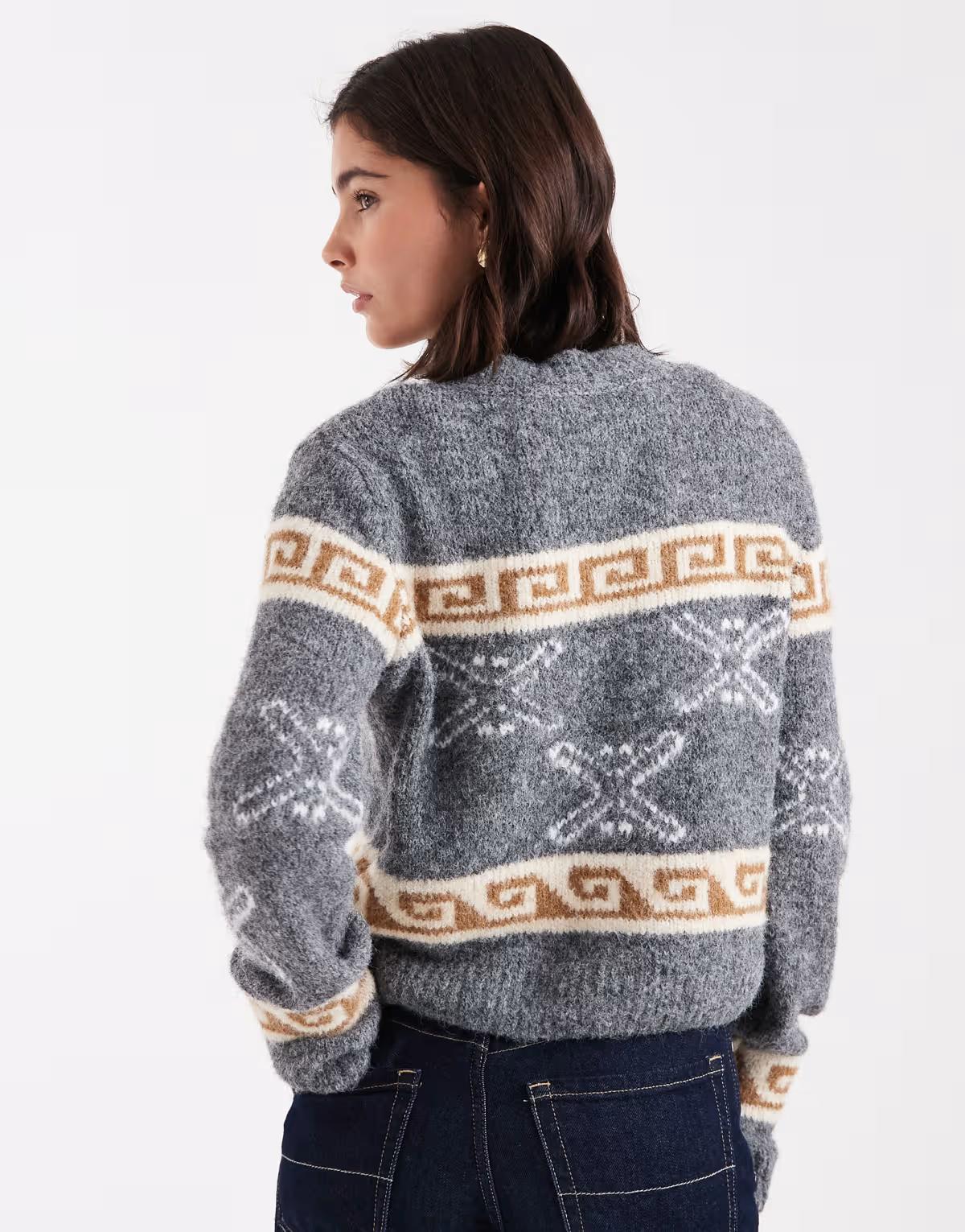 Object jacquard print knitted cardigan in medium grey melange
