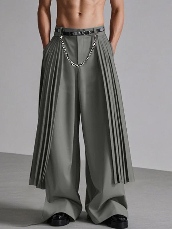Men's Pleated Layered Chain Decor Wide Leg Pant SKUL35116