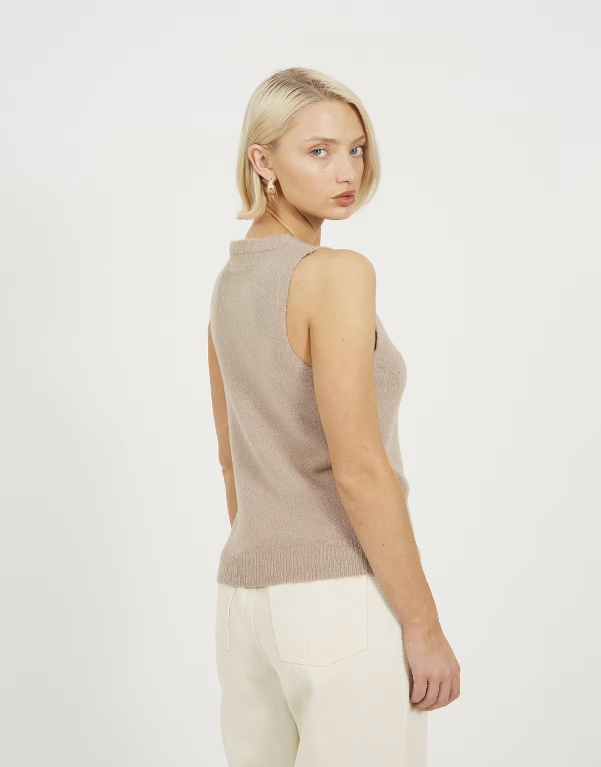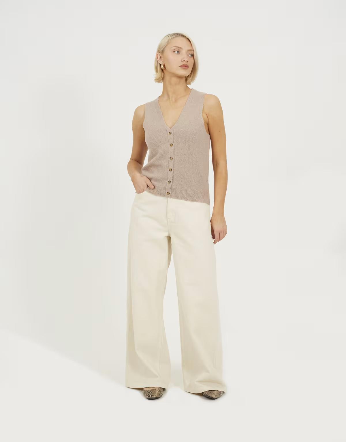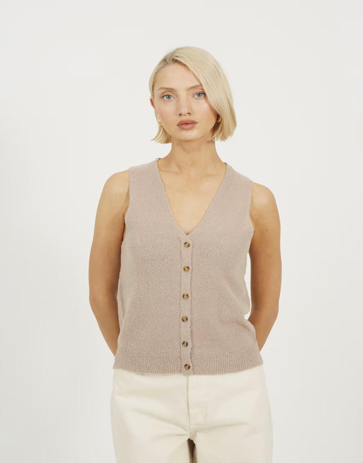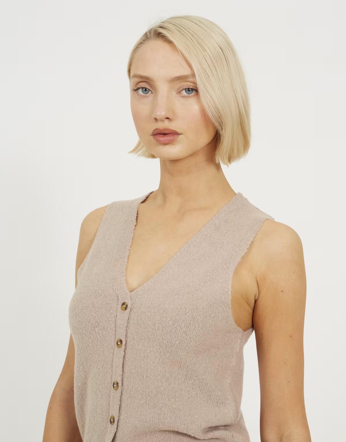 Brave Soul Mossy yarn v-neck knitted waistcoat in taupe