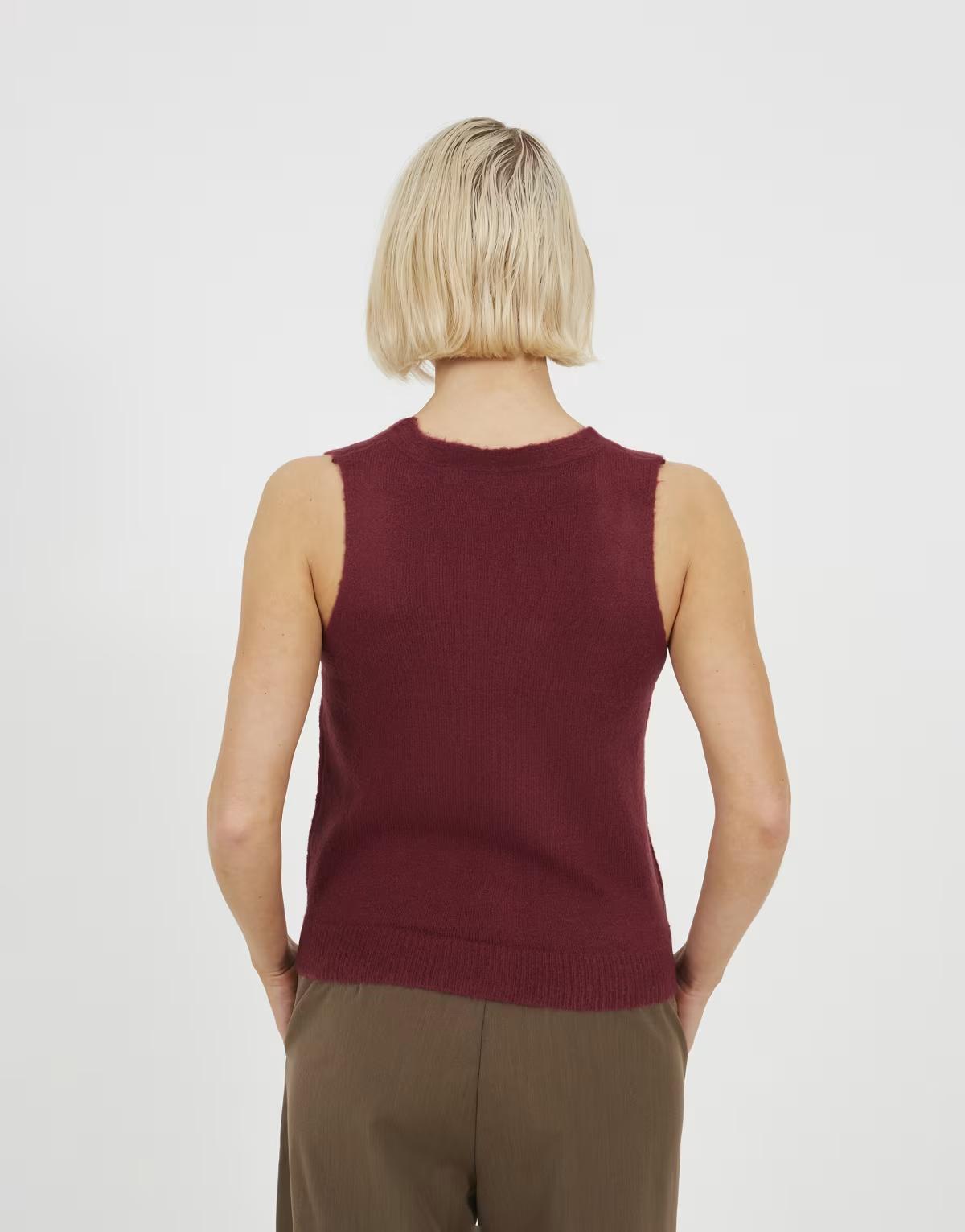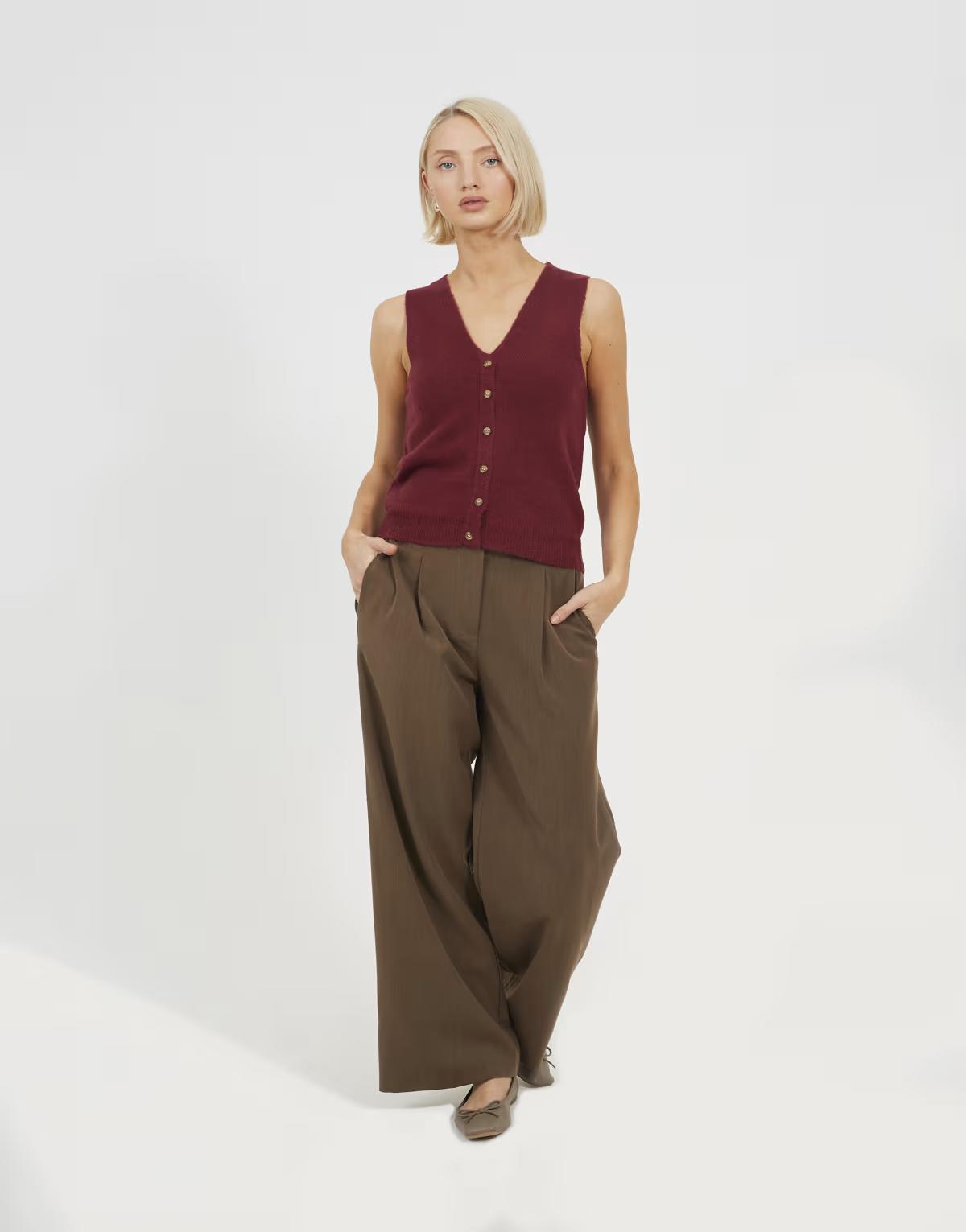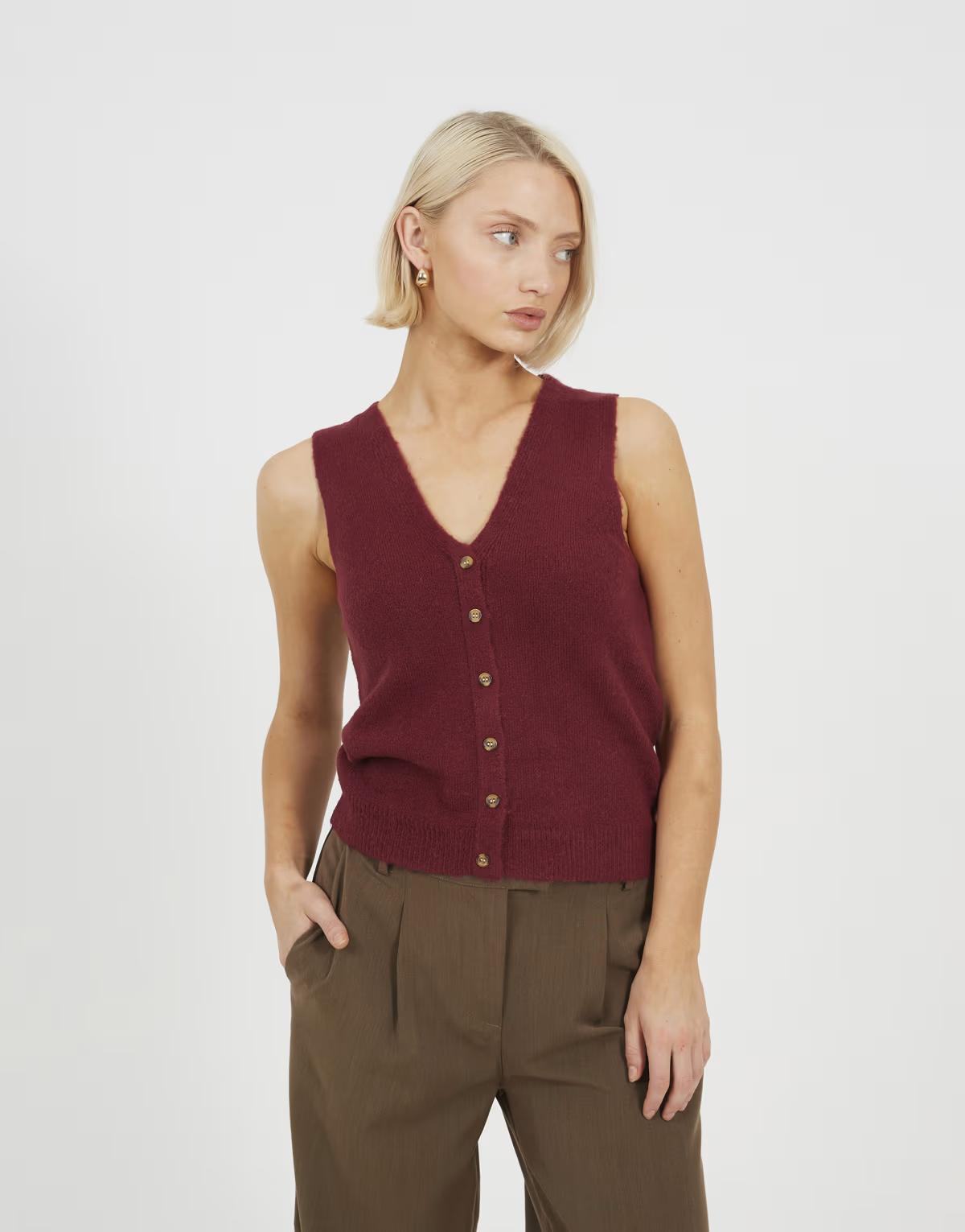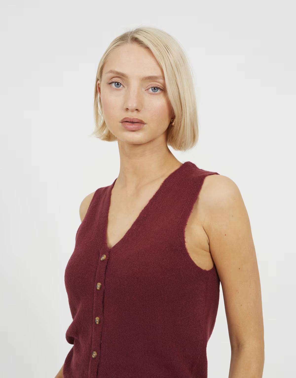 Brave Soul Mossy yarn v-neck knitted waistcoat in wine