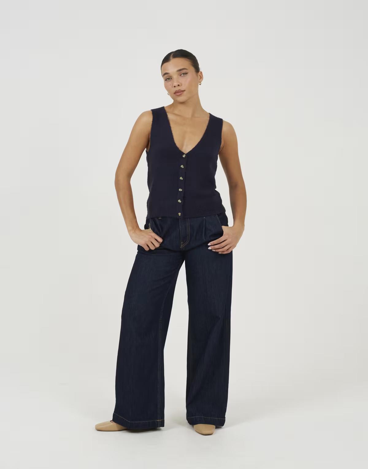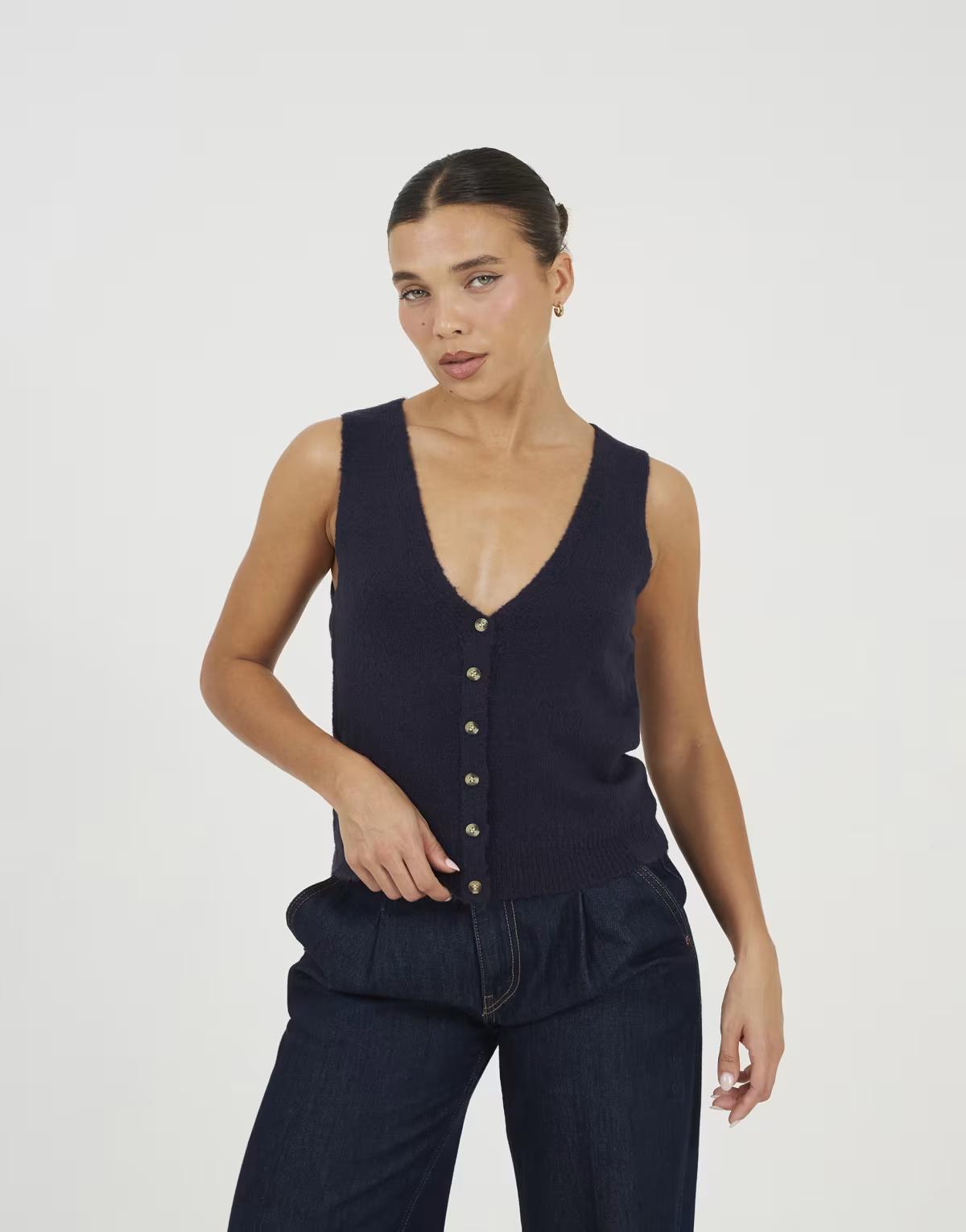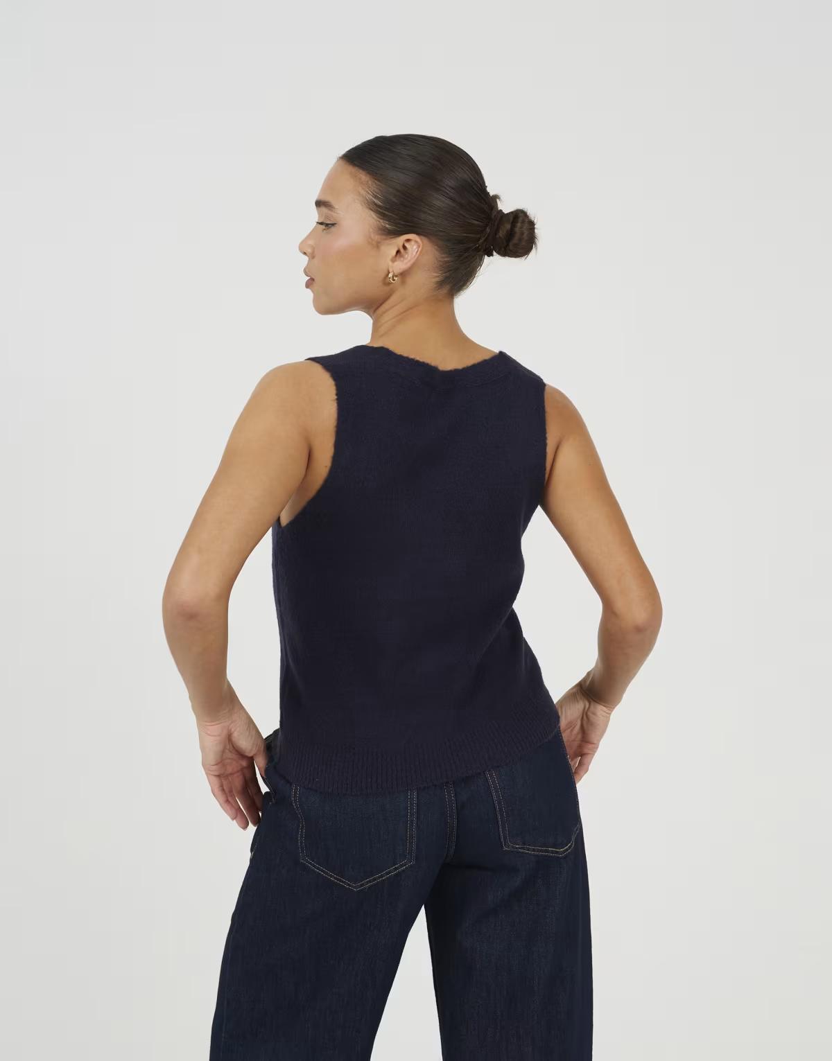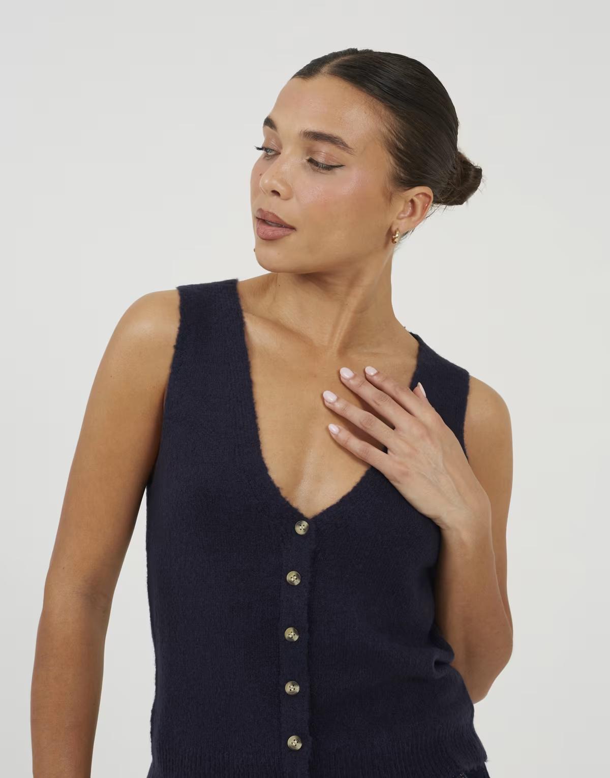 Brave Soul Mossy yarn v-neck knitted waistcoat in navy