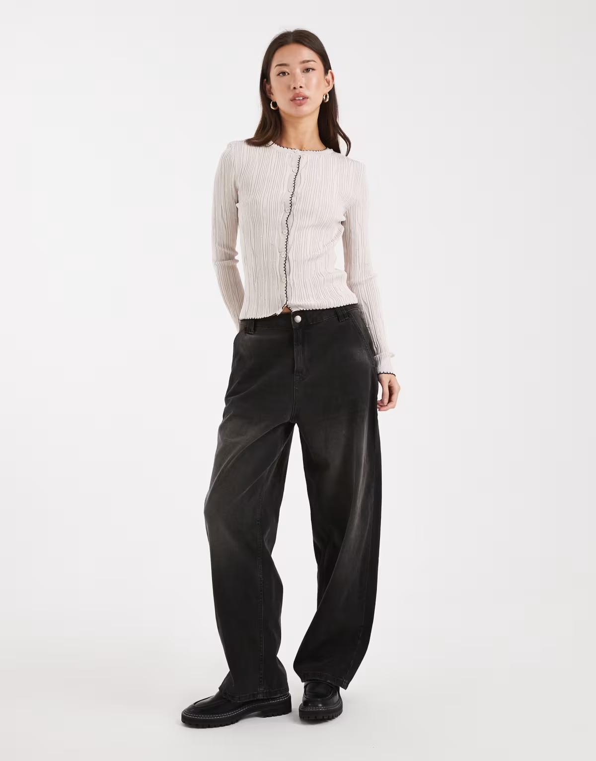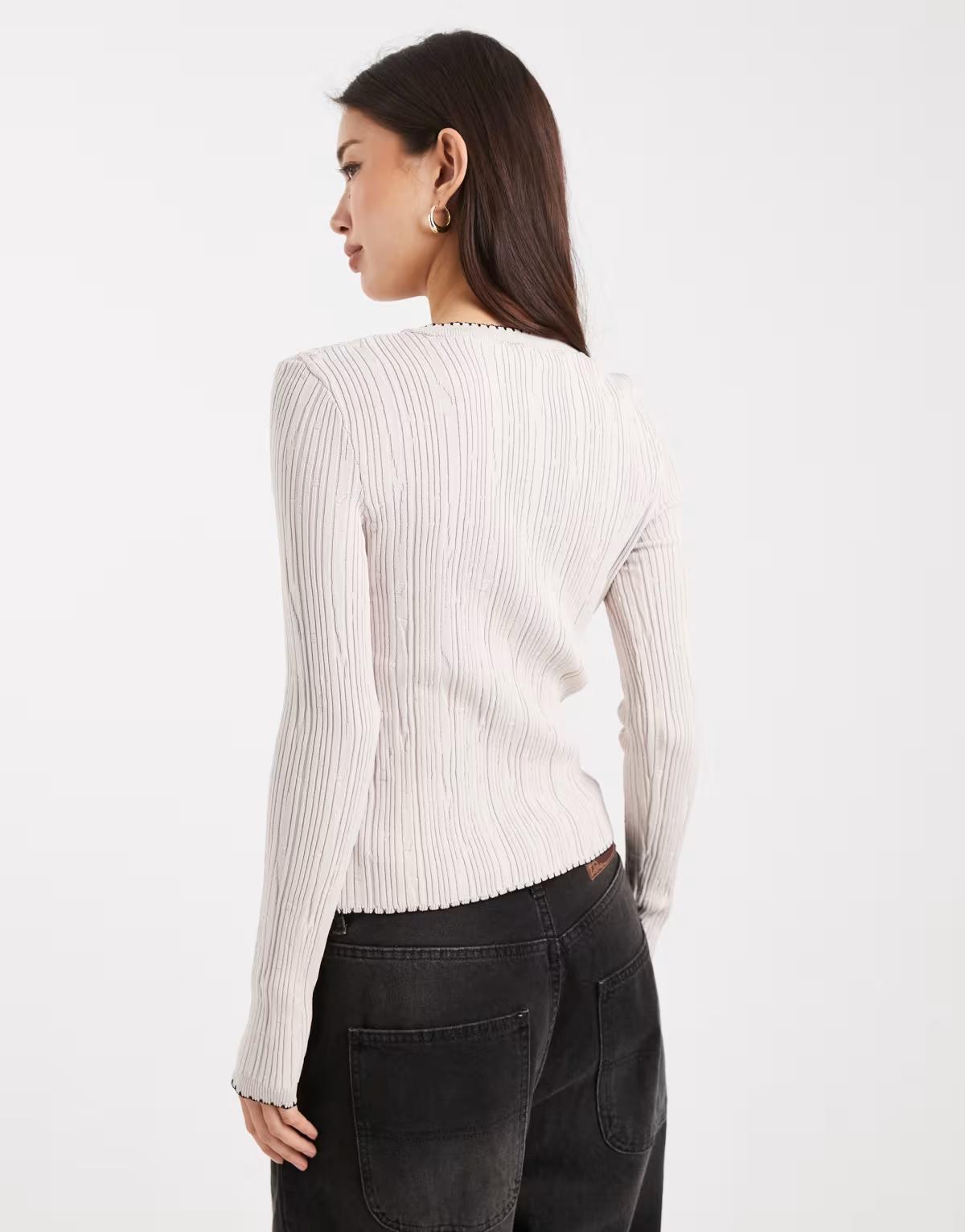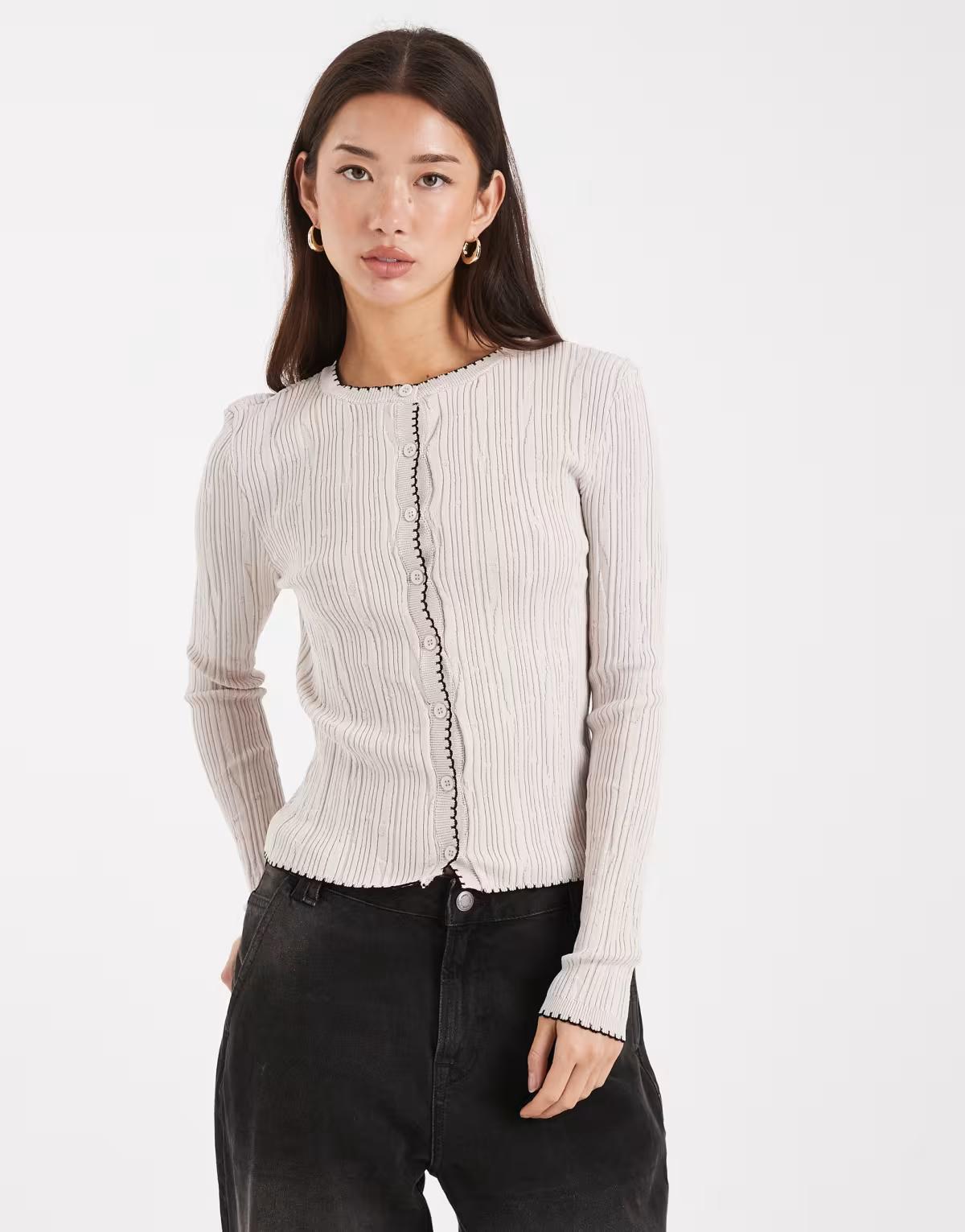 Miss Selfridge rib knit blanket stitch cardigan in cream