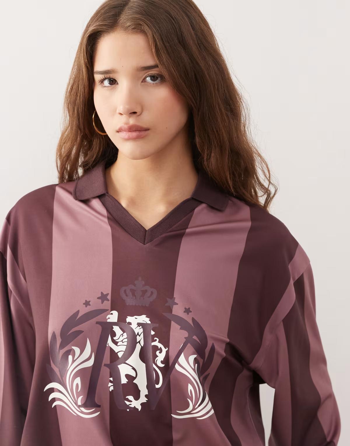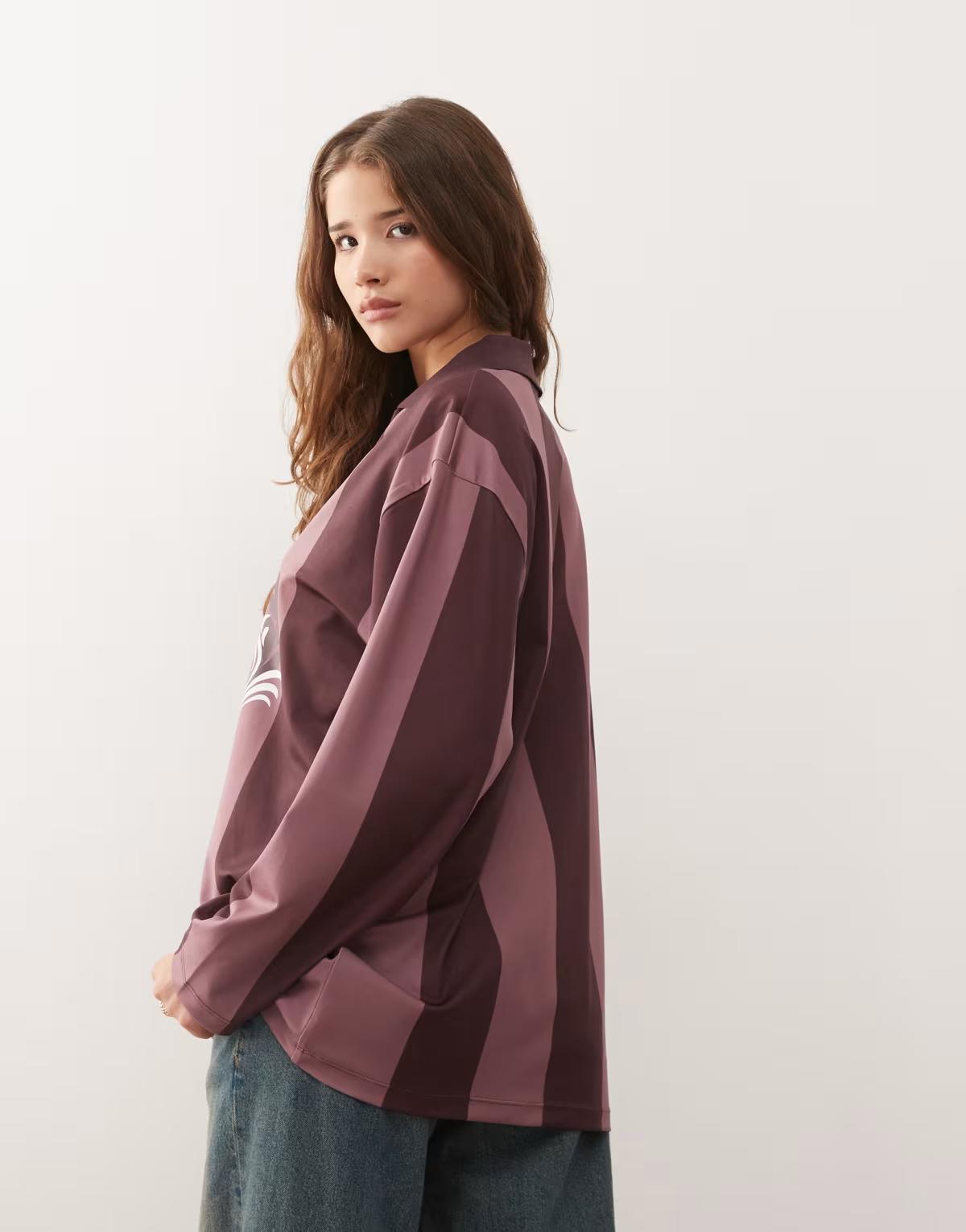 Reclaimed Vintage long sleeve football top in pink and purple stripe