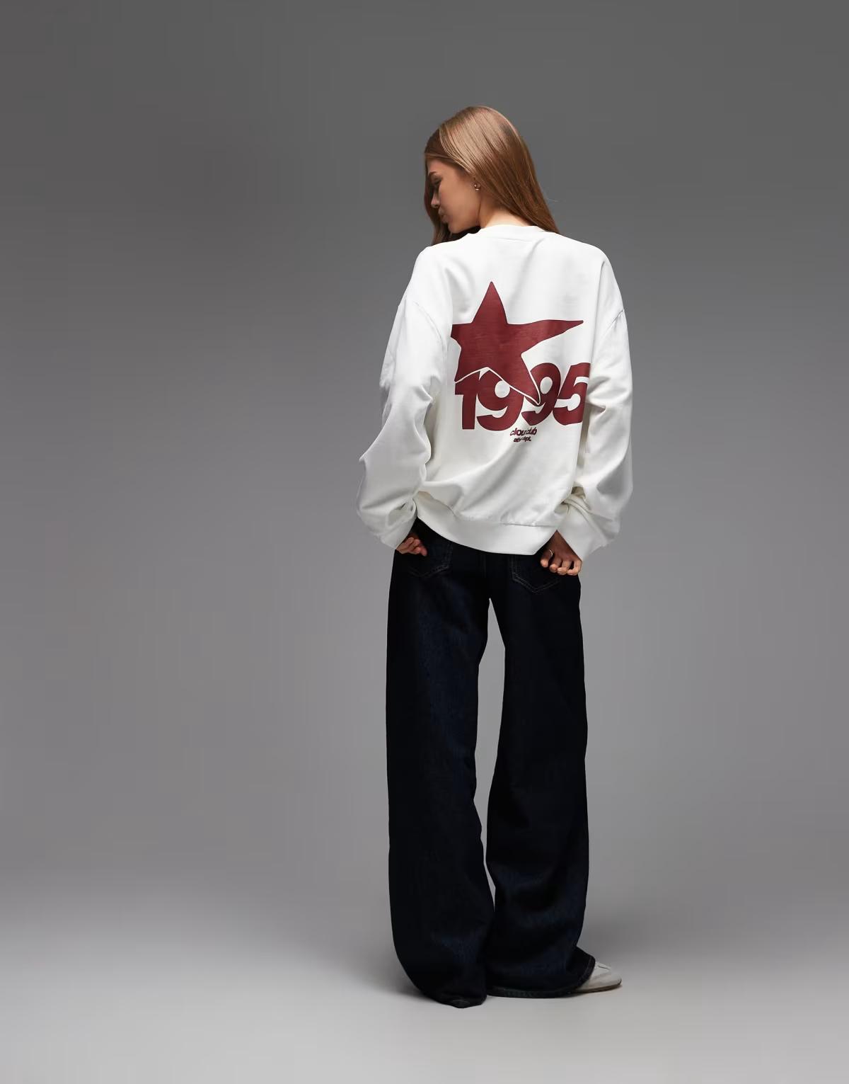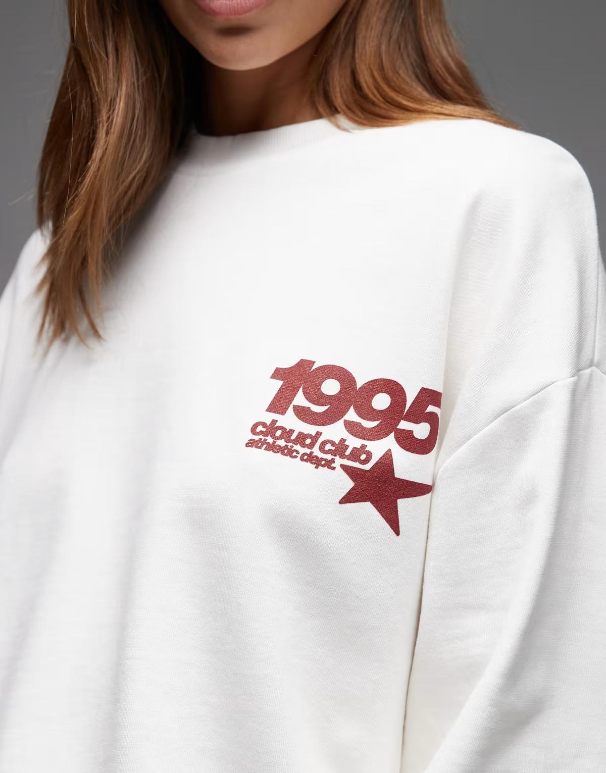 ASOS DESIGN oversized sweat with 1995 sports graphic in cream