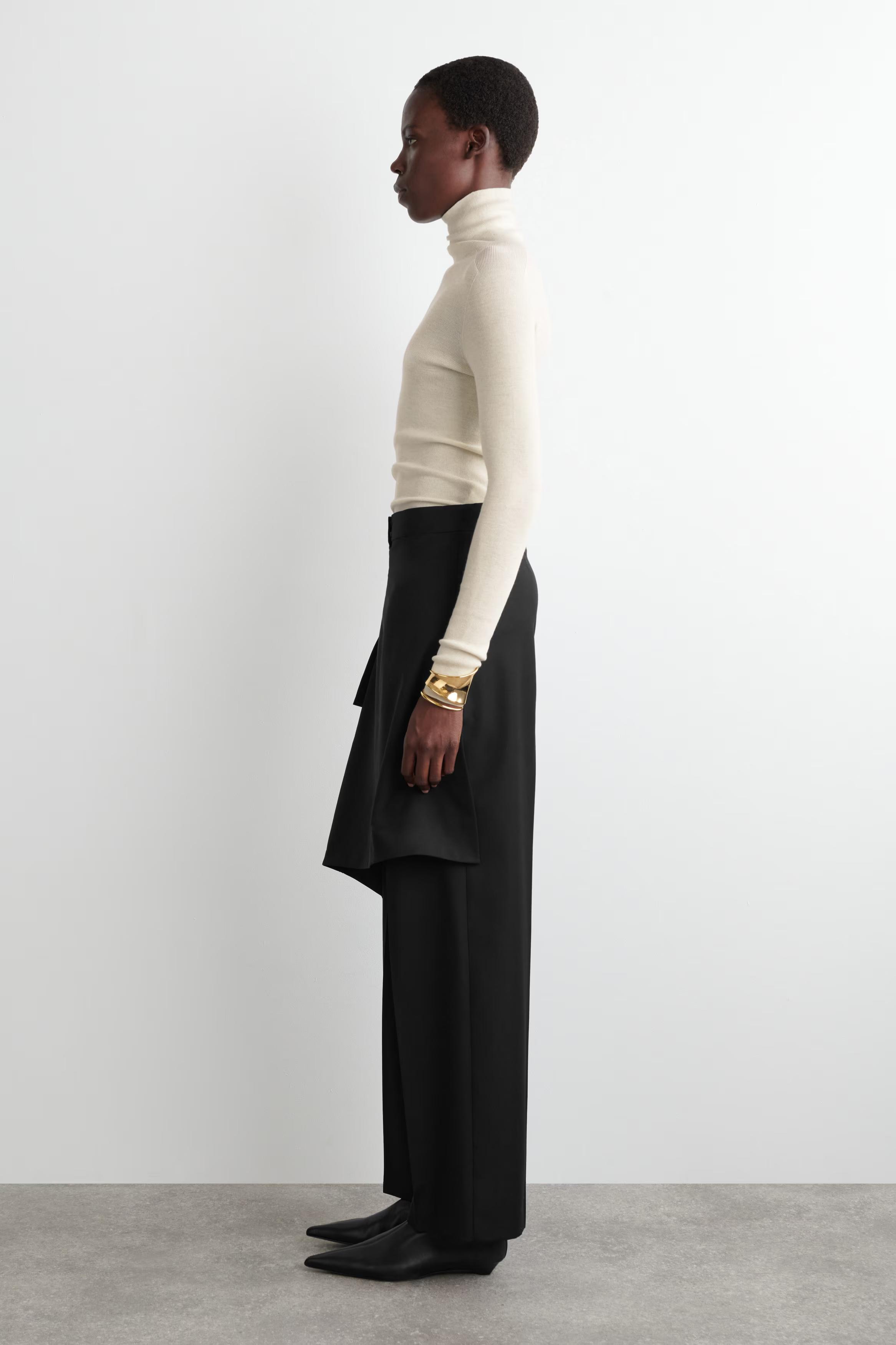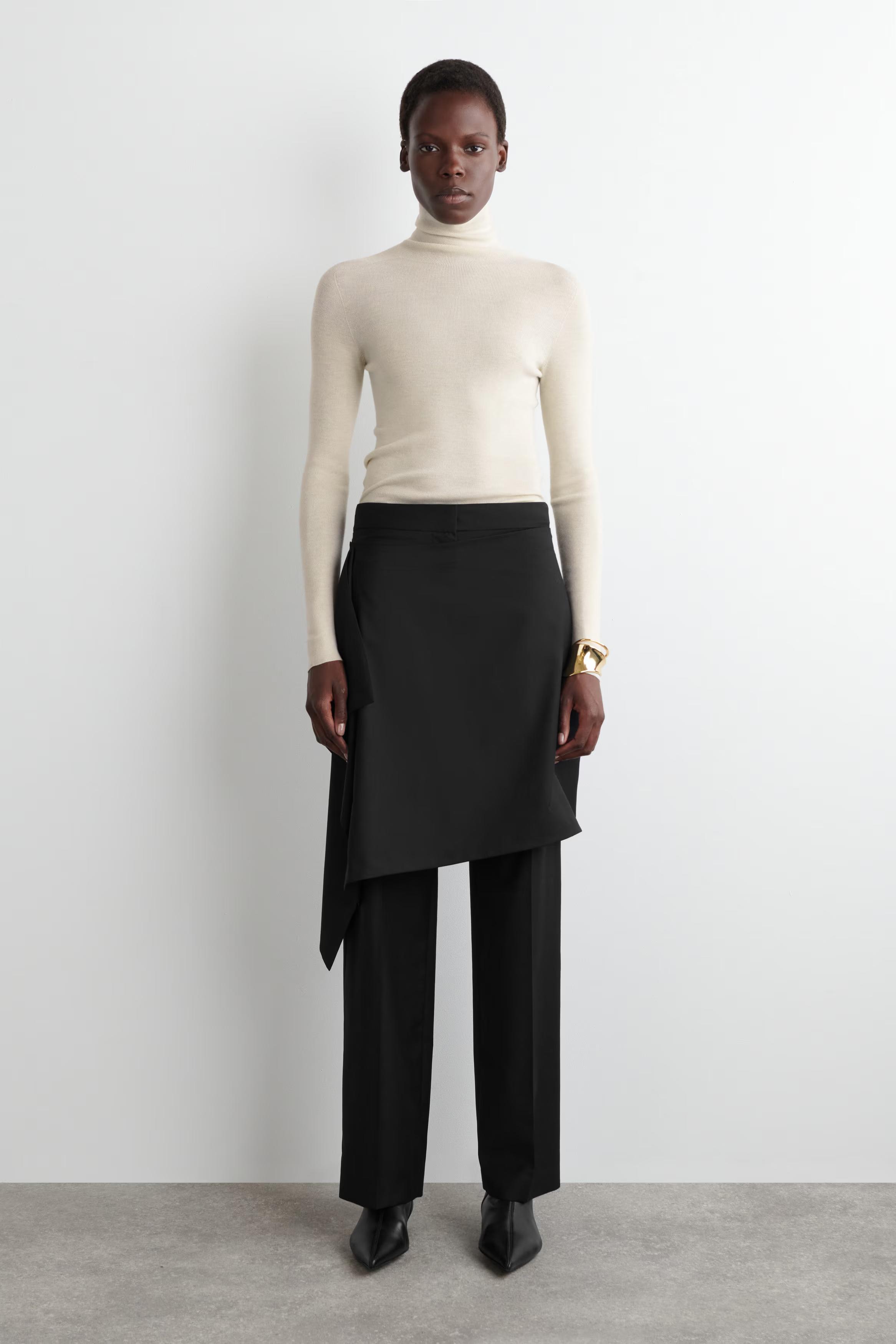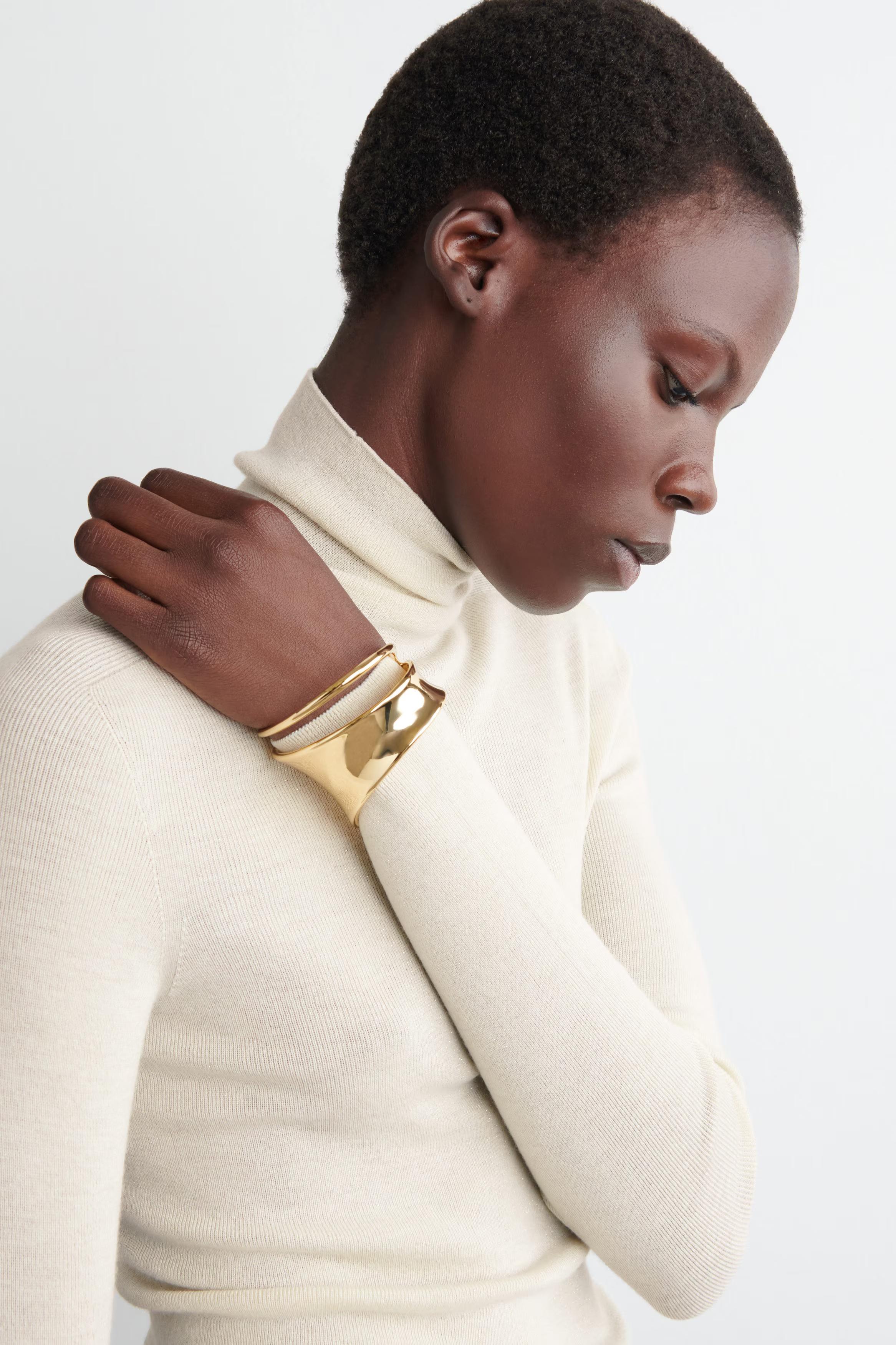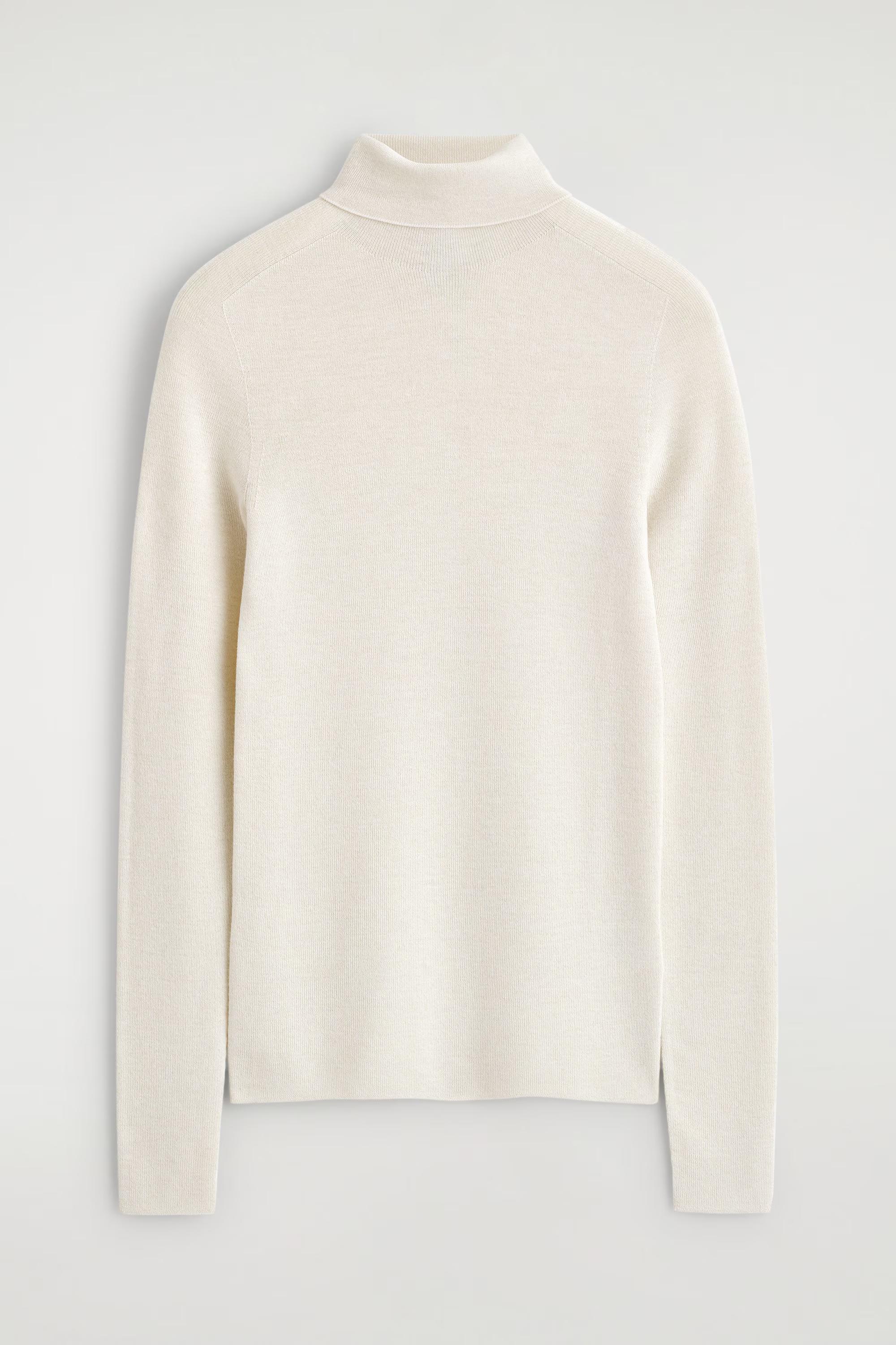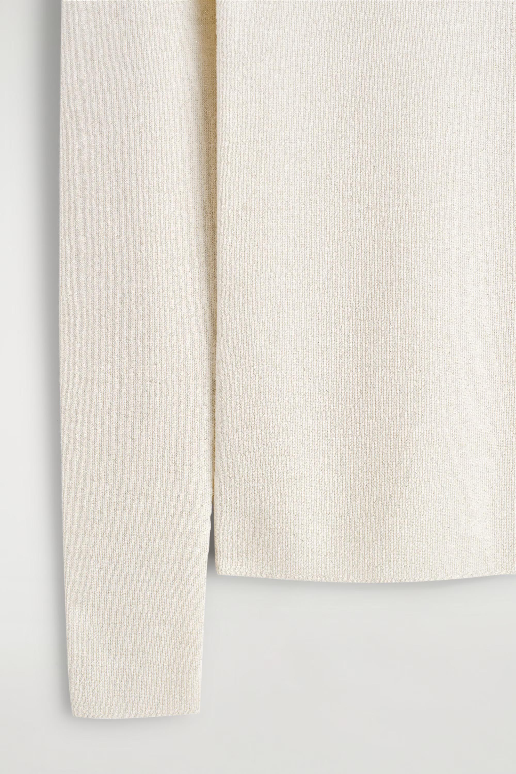 The COS designers reframe the classic jumper for soir\u0026eacute;e season. Cut in a defined silhouette, this seamless piece is knitted from ultra-fine merino wool and flecked with metallic threads that subtly catch the light. Style it effortlessly from day to night.\u0026nbsp;\u0026nbsp;Slim fitThis product contains Responsible Wool Standard TE-00047206 (RWS) wool fibre from farms certified to animal welfare and land-management requirements\u0026nbsp;Shell: 85% Merino wool, 15% Metallised fibre. Excluding trims / Machine wash\u0026nbsp;Back length of size S is 62cm / Model wears a size S