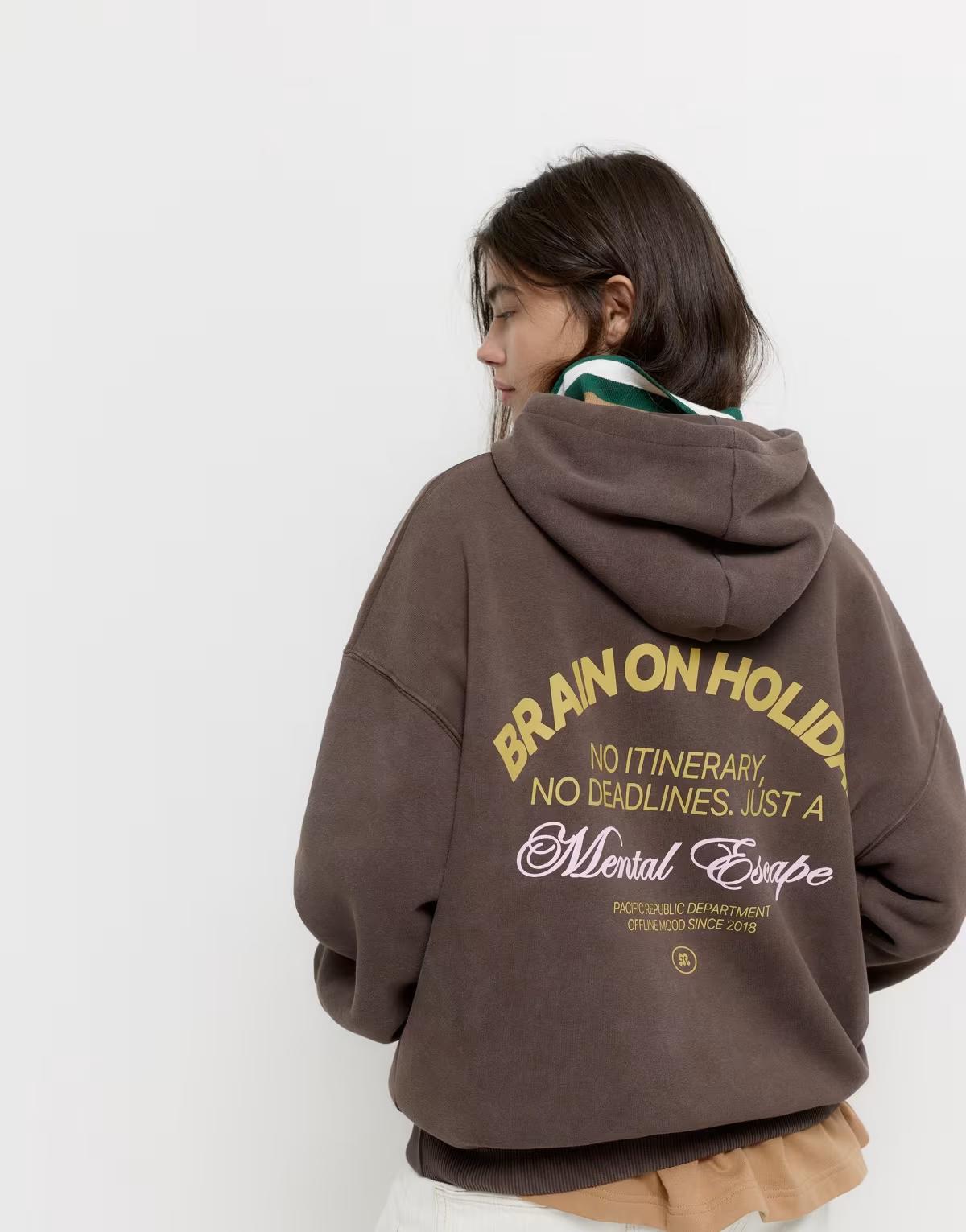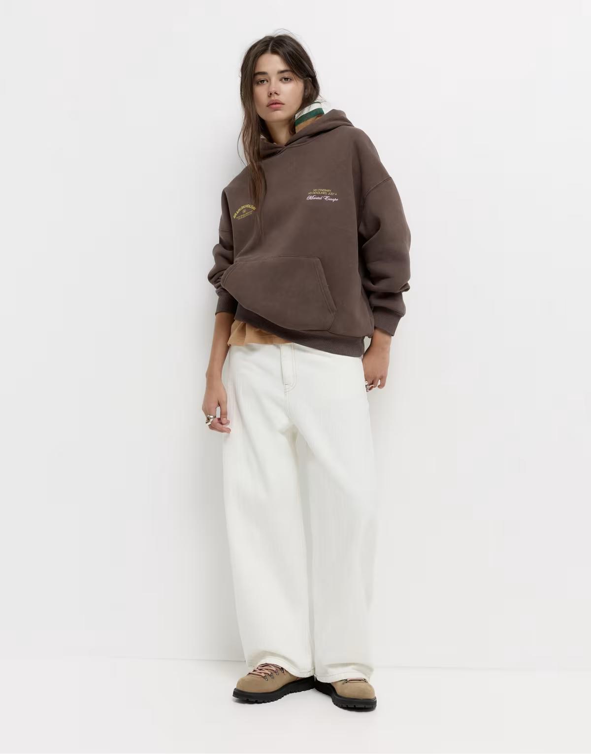 BrandWhen it comes to your casual rotation, no one does it better than Pull&Bear. Inspired by the laid-back vibe of Palm Springs, California, the brand references grunge influences, cool, sporty elements and street style across a collection of jeans, jackets, tops and trousers. And the good news is they’re all available in our Pull&Bear at ASOS edit, as well as shoes, bags and swimwear. What more could you want?Look After MeMachine wash according to instructions on care labelAbout MeSweatshirt fabric: soft and warm fabric with a cosy raised texture inside