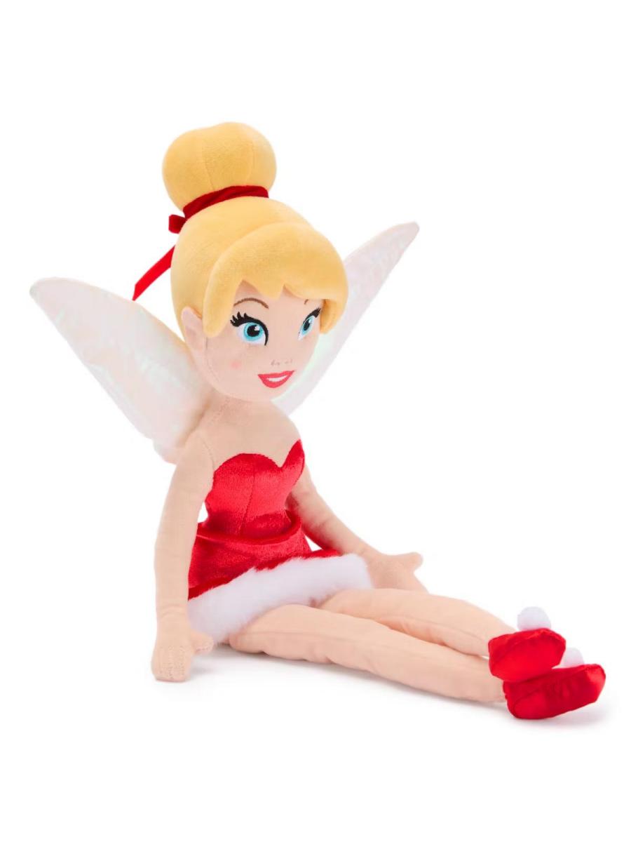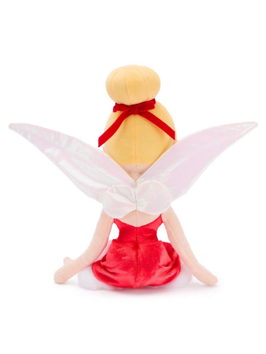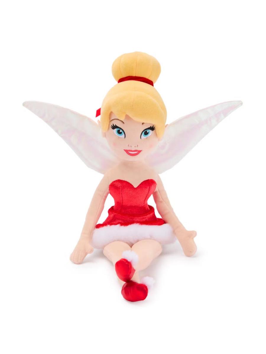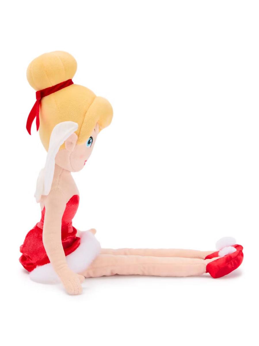 Tinker Bell’s ready to spread festive cheer in her red velvet dress white fluffy white trims, topped off with a bow-tied bun and twinkly wings. This soft toy doll is perfect for cuddles, Christmas magic, or adding a little pixie charm to your tree.
