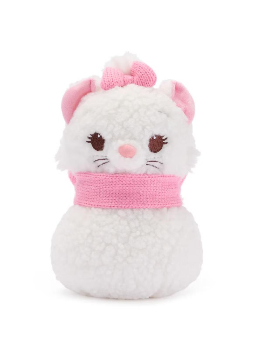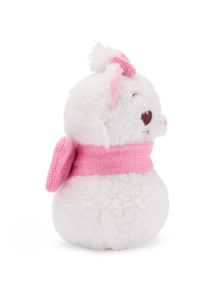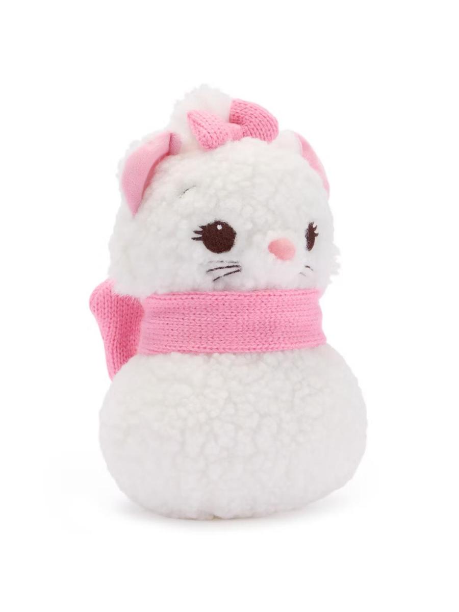 Paws-itively purrfect! This Marie-inspired snowman is all elegance and fluff, with a pink bow and a matching scarf. This soft toy is ready to add a touch of Parisian charm to your winter wonderland.