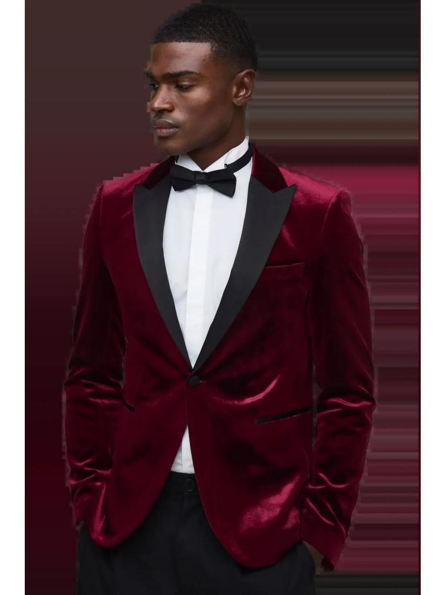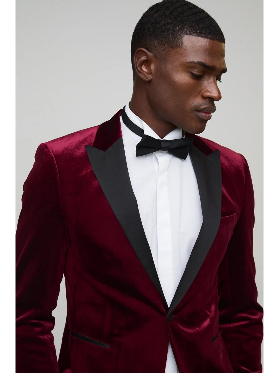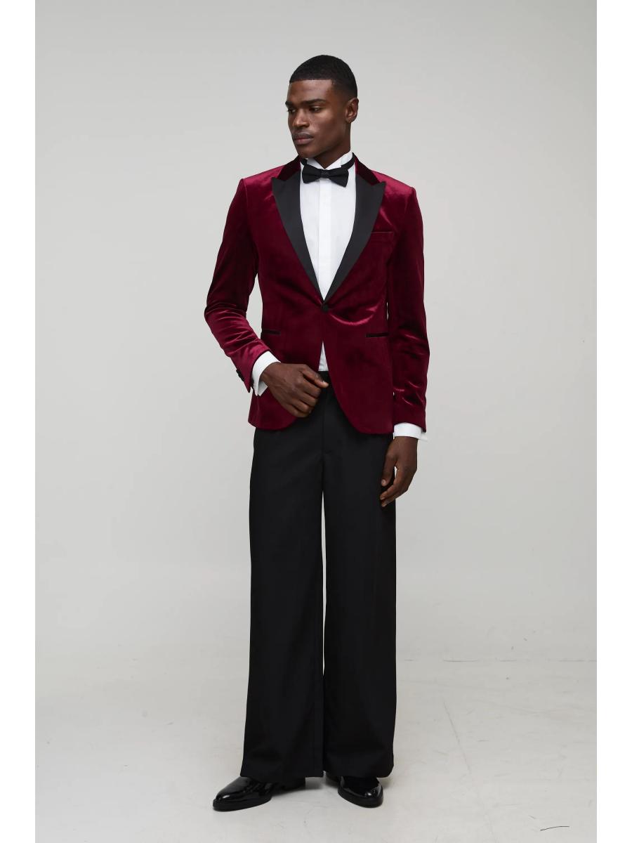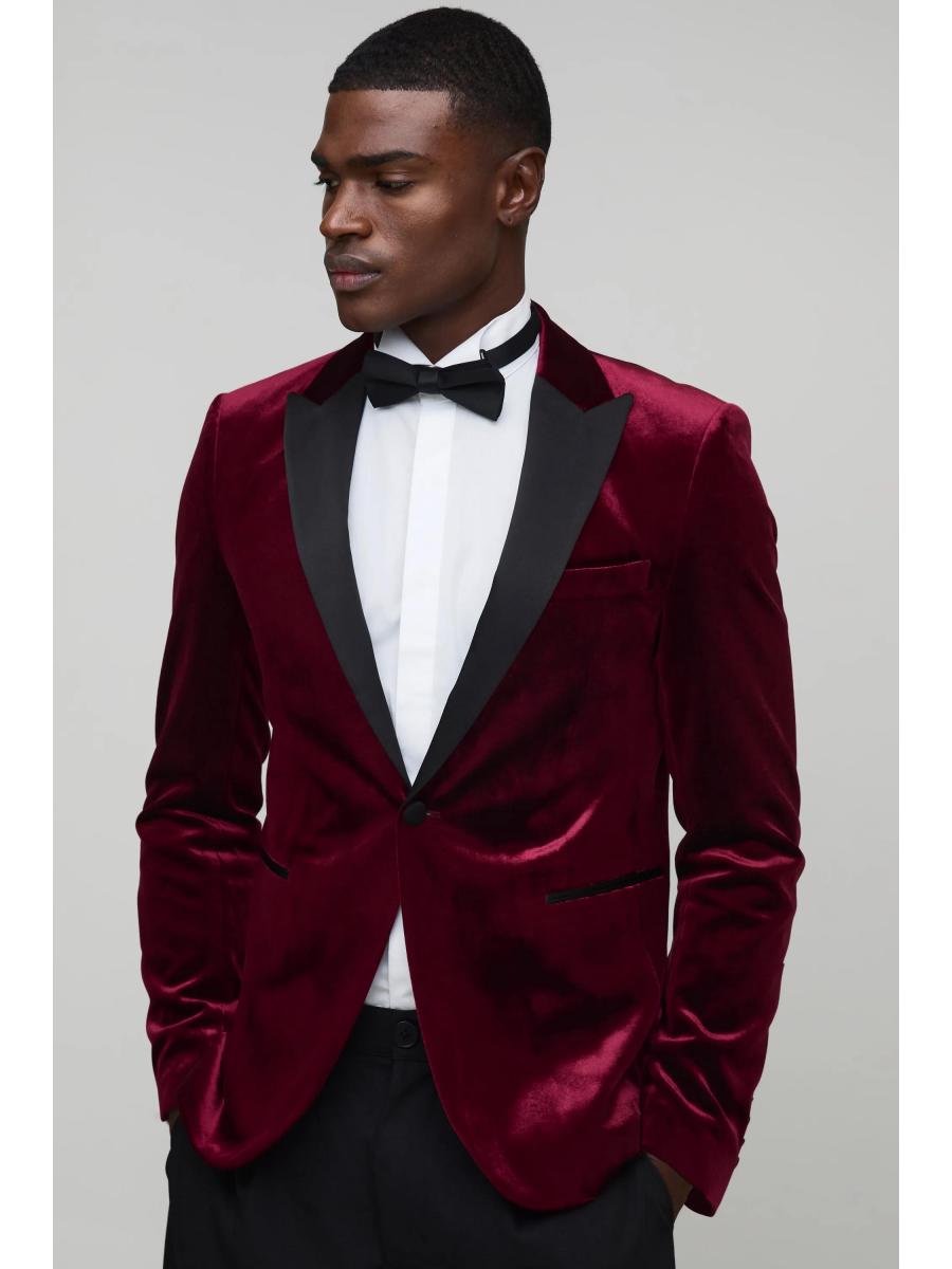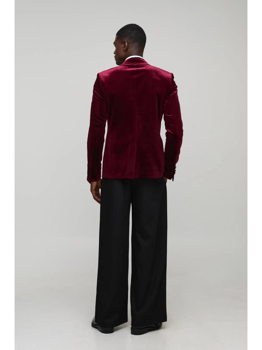 Burgundy Velvet Double Breasted Tuxedo Jacket