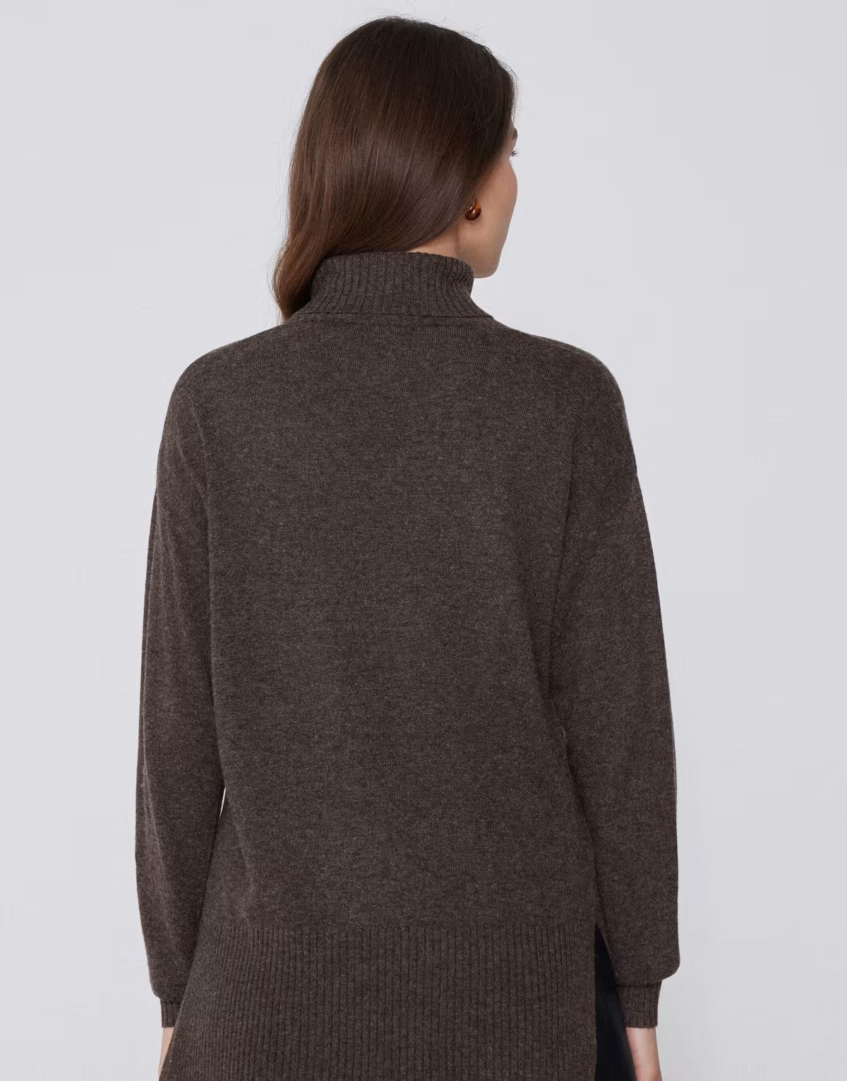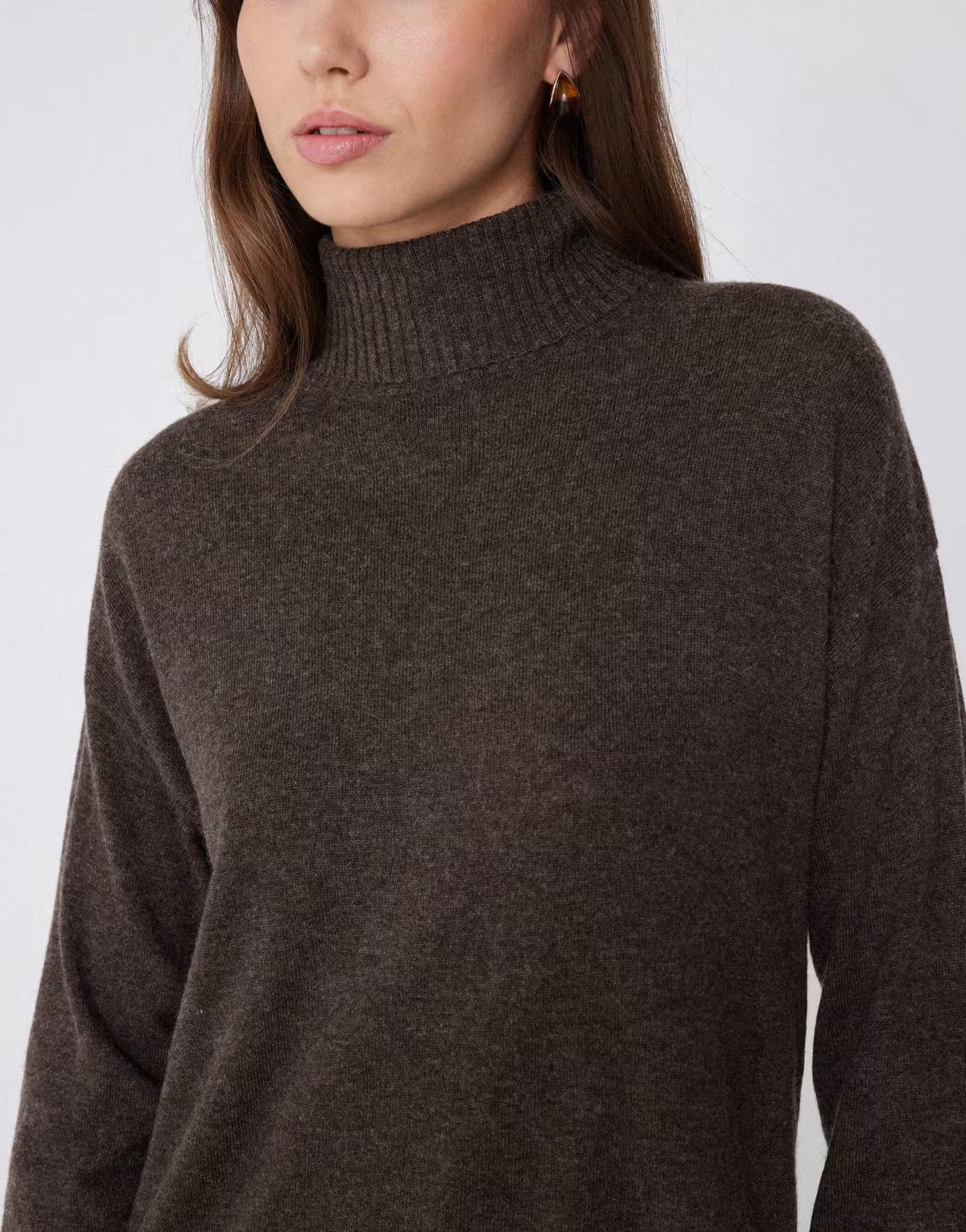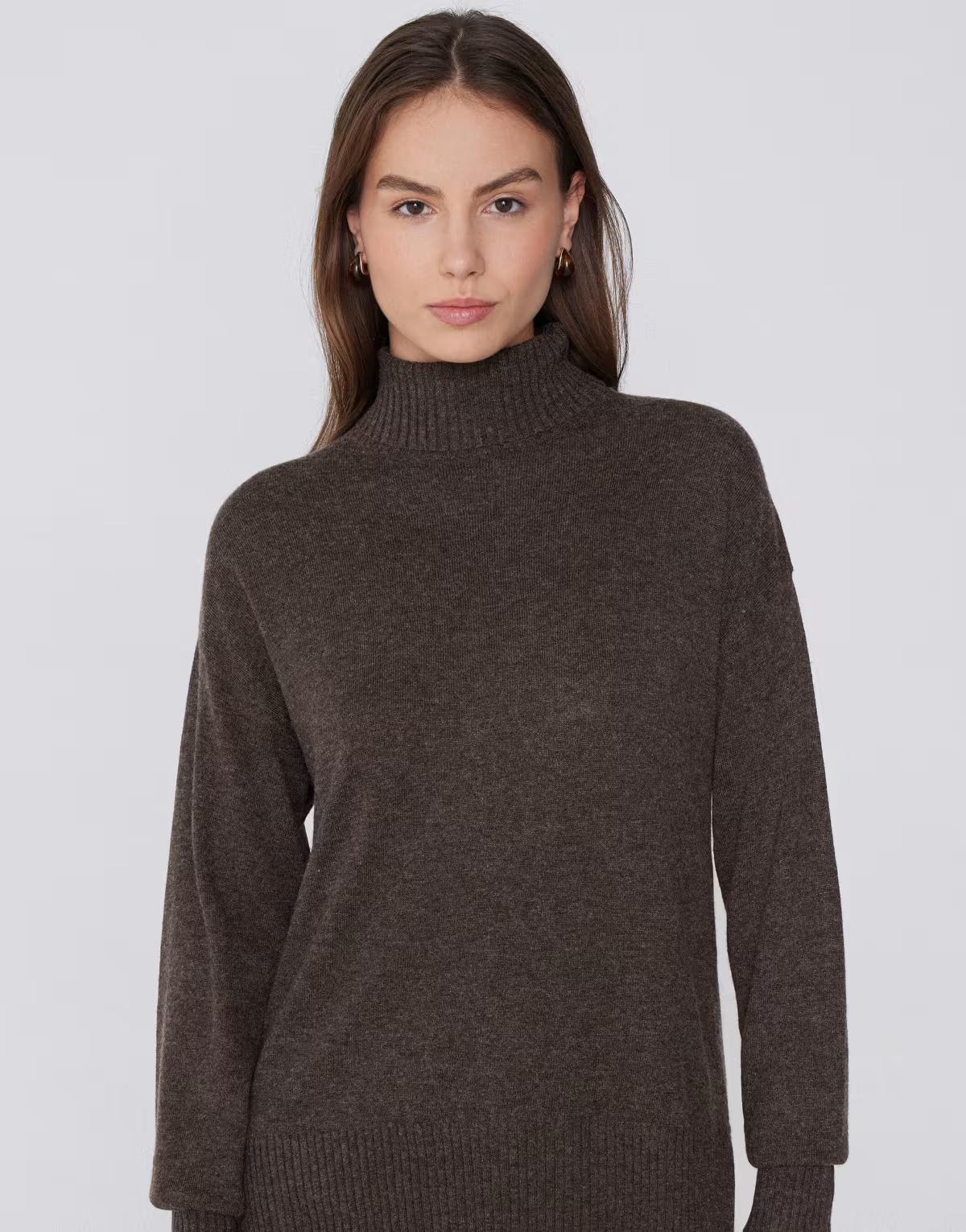 Tezenis Long thick polo neck top with wool in brown melange