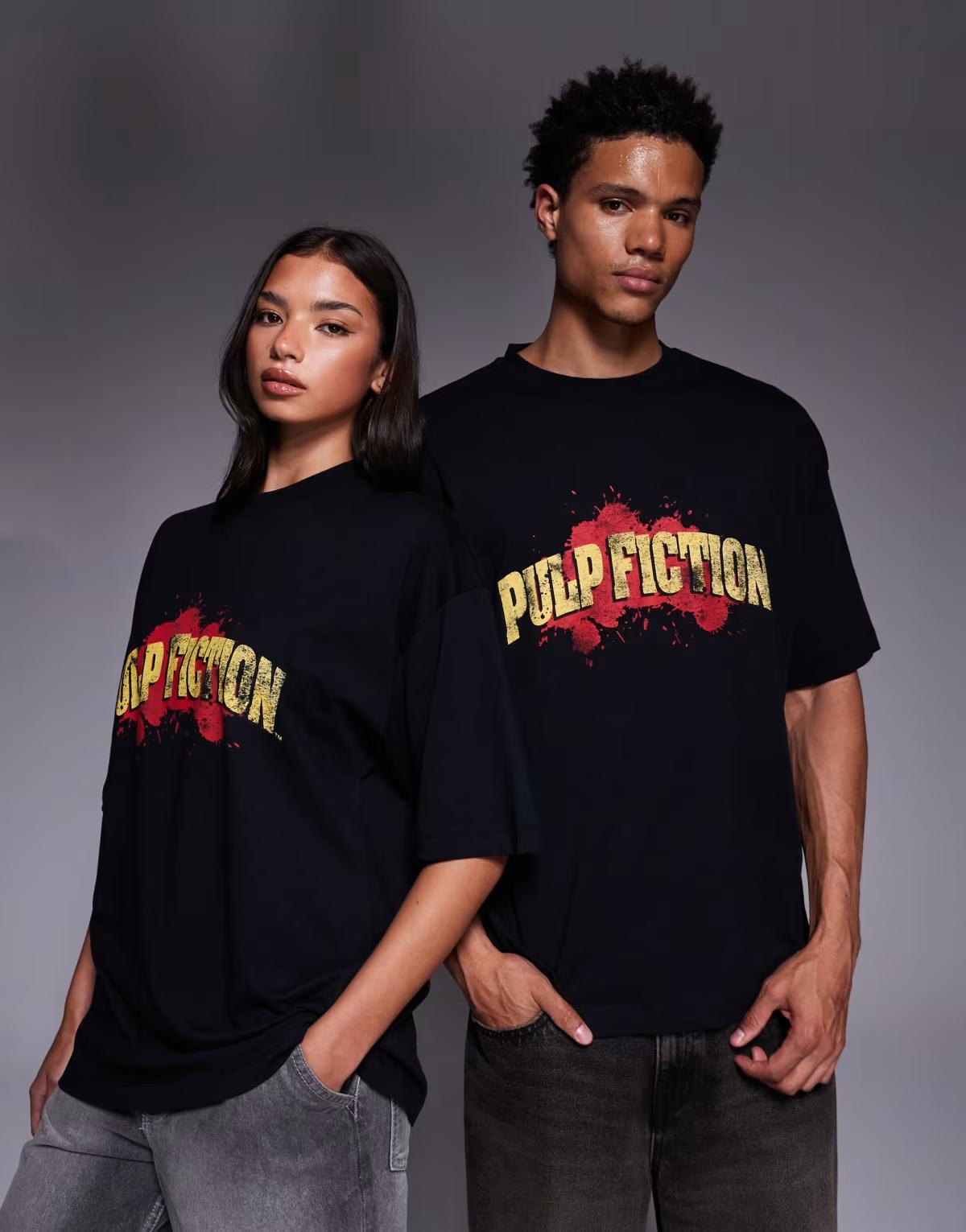 ASOS DESIGN unisex oversized t-shirt with Pulp Fiction print in black