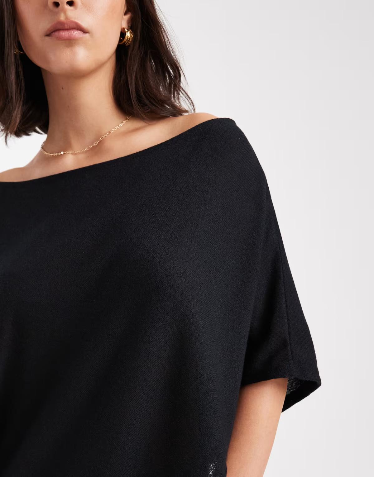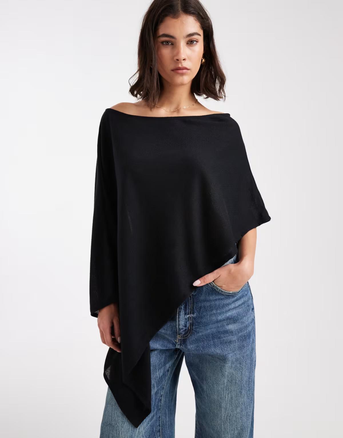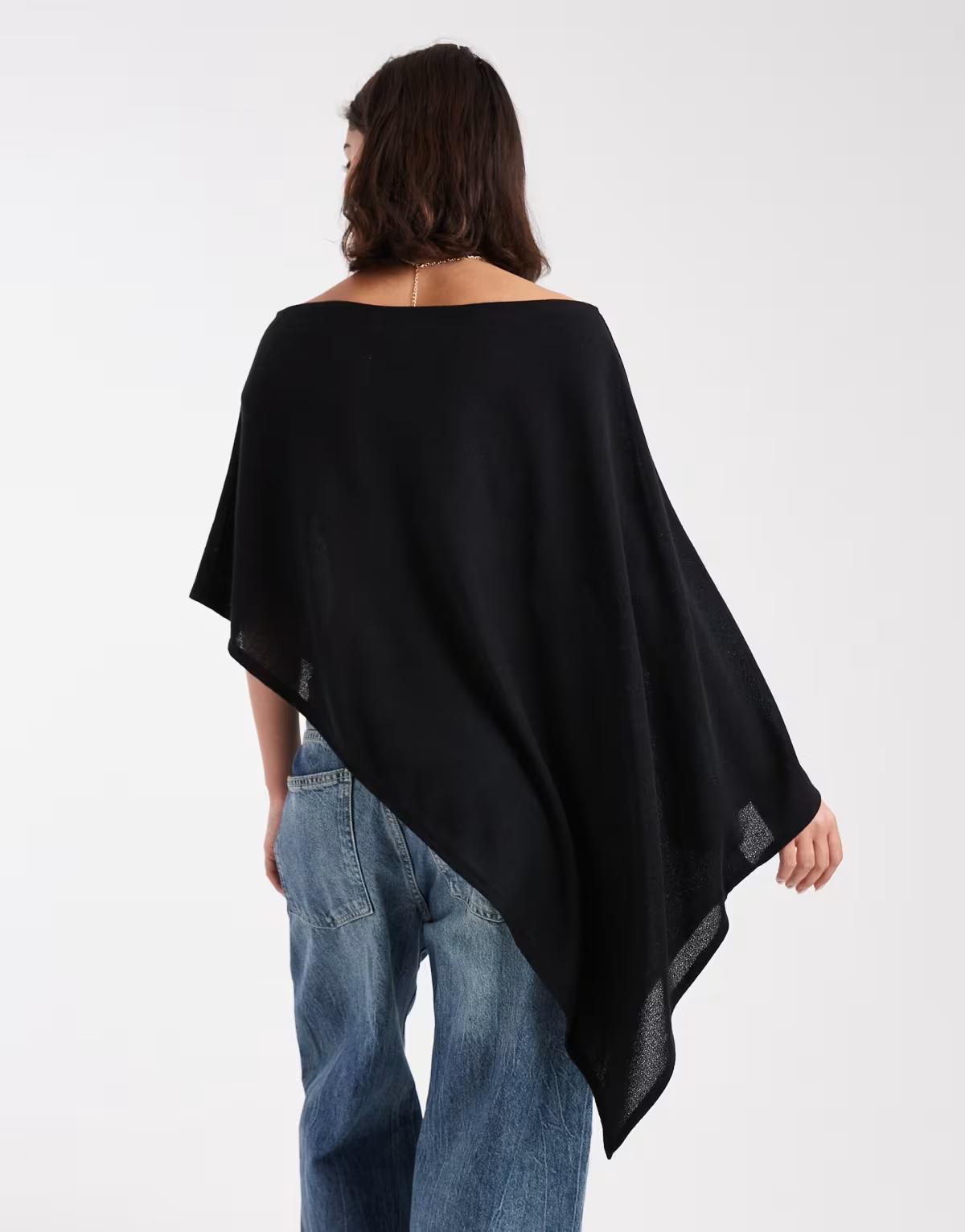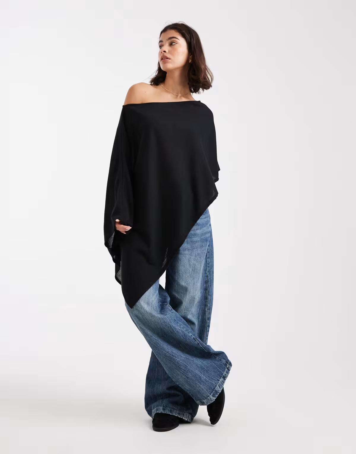 ASOS DESIGN semi sheer knit-look asymmetric one shoulder cape in black