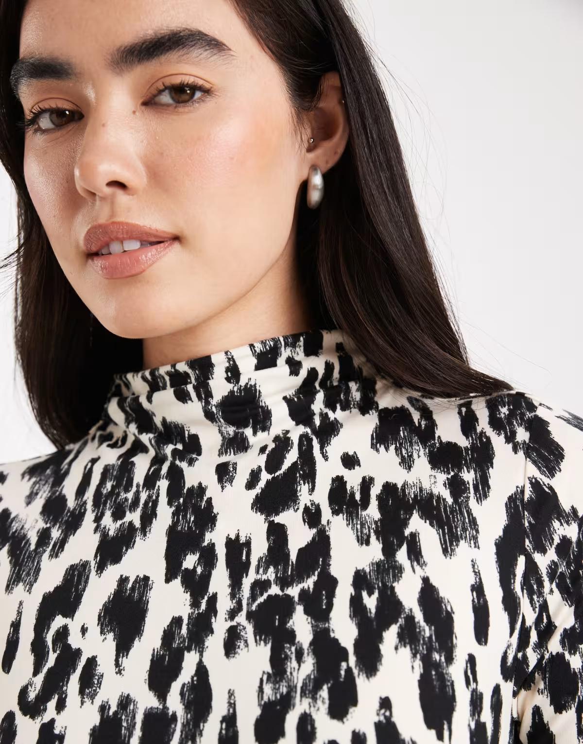 Miss Selfridge sculpted grown on neck bodysuit in animal print