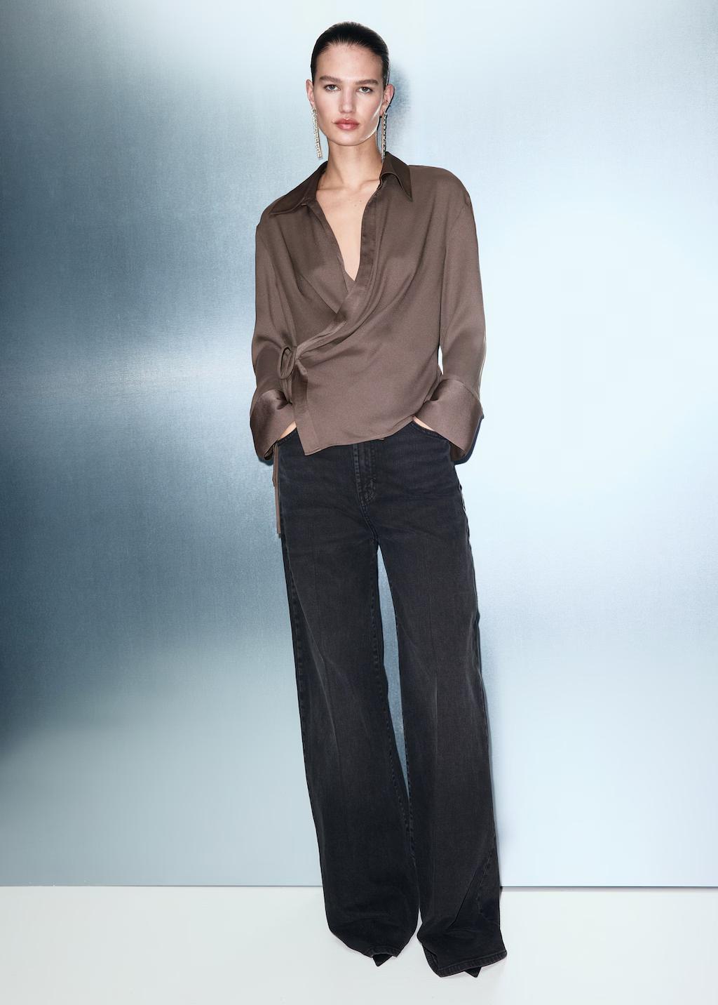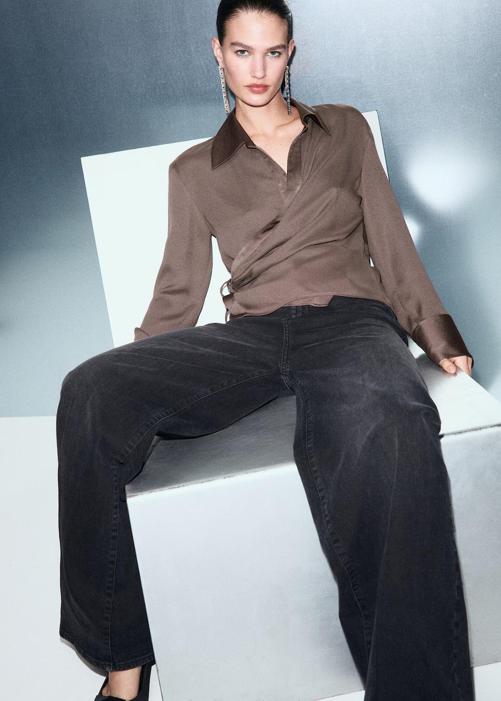 Camisa satinada cruzada