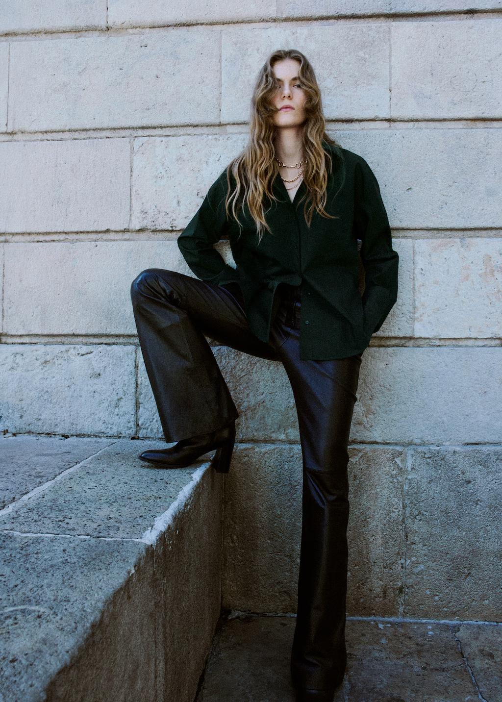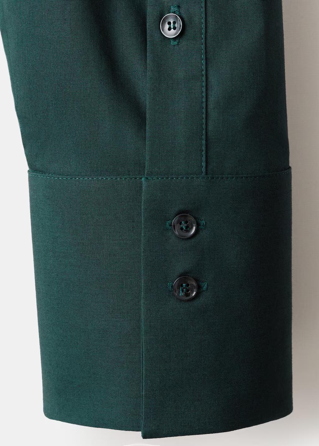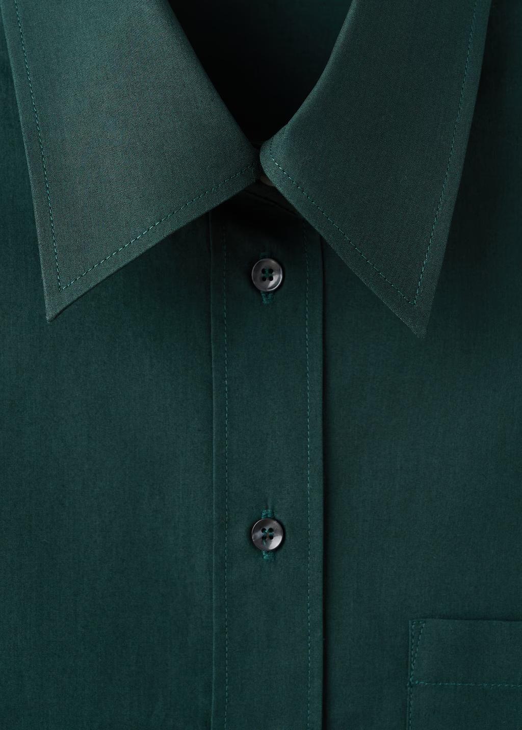 Confeccionada en tejido popelín de algodón, esta prenda presenta un diseño oversize con cuello camisero. Incluye un bolsillo de parche en el pecho, manga larga con puños abotonados y cierre delantero con botones