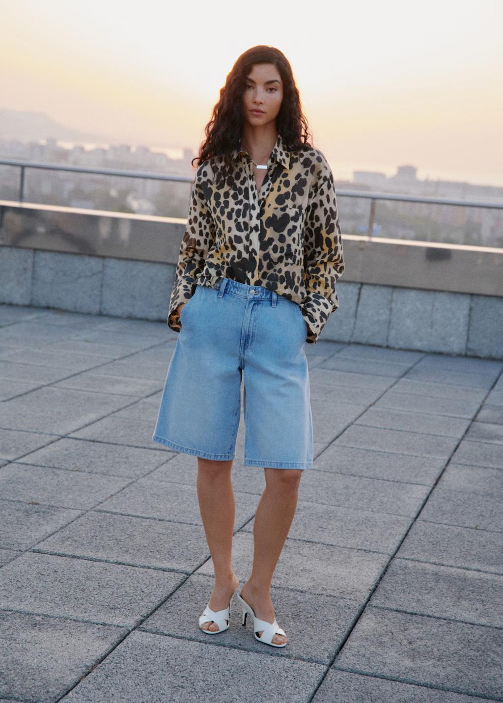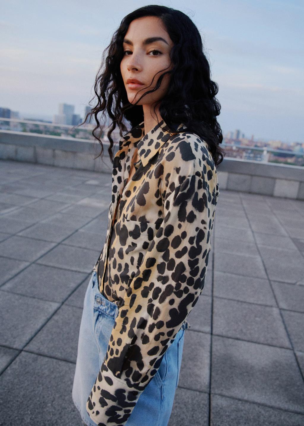 Confeccionada en tejido 100% algodón, esta prenda presenta un diseño recto con estampado leopardo. Incluye un cuello camisero, manga larga con puños abotonados y un bolsillo de parche delantero. Cuenta con una falda a juego para un 'total look' atrevido