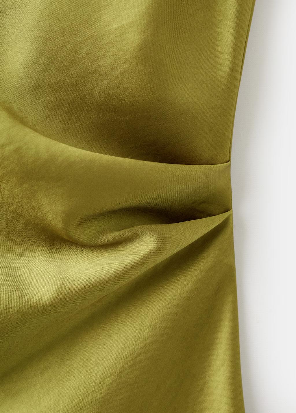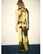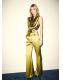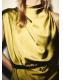 Confeccionada en tejido satinado, esta prenda presenta un diseño recto con un elegante cuello drapeado. Las mangas asimétricas y el detalle fruncido en el hombro añaden un toque distintivo. Cierre de cremallera en la parte posterior. Cuenta con un pantalón a conjunto