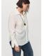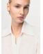 Confeccionada en tejido mezcla lyocell, esta prenda presenta un diseño recto con cuello camisero. Las mangas largas tienen puños abotonados y parches decorativos. El cierre delantero de botones oculto completa el diseño. Disponible Plus