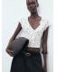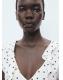 Esta blusa de lunares con diseño crop y entallado realza la figura. El escote de pico con detalle de volante añade un detalle único. Incluye un lazo ajustable en la espalda. Combínalo con su falda a conjunto para crear un 'total look'