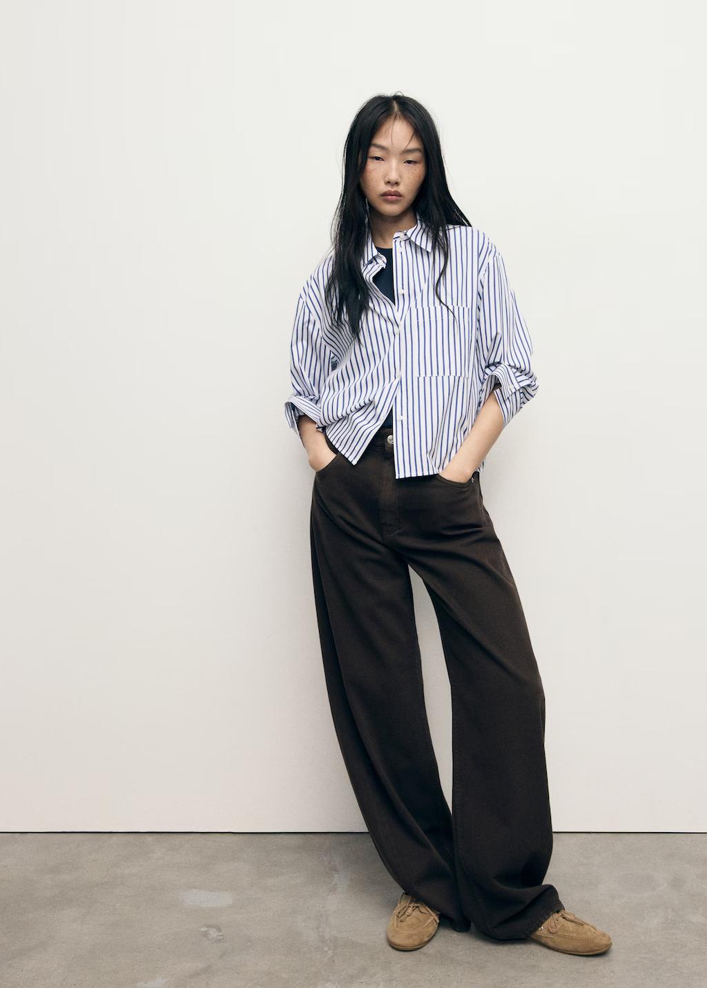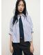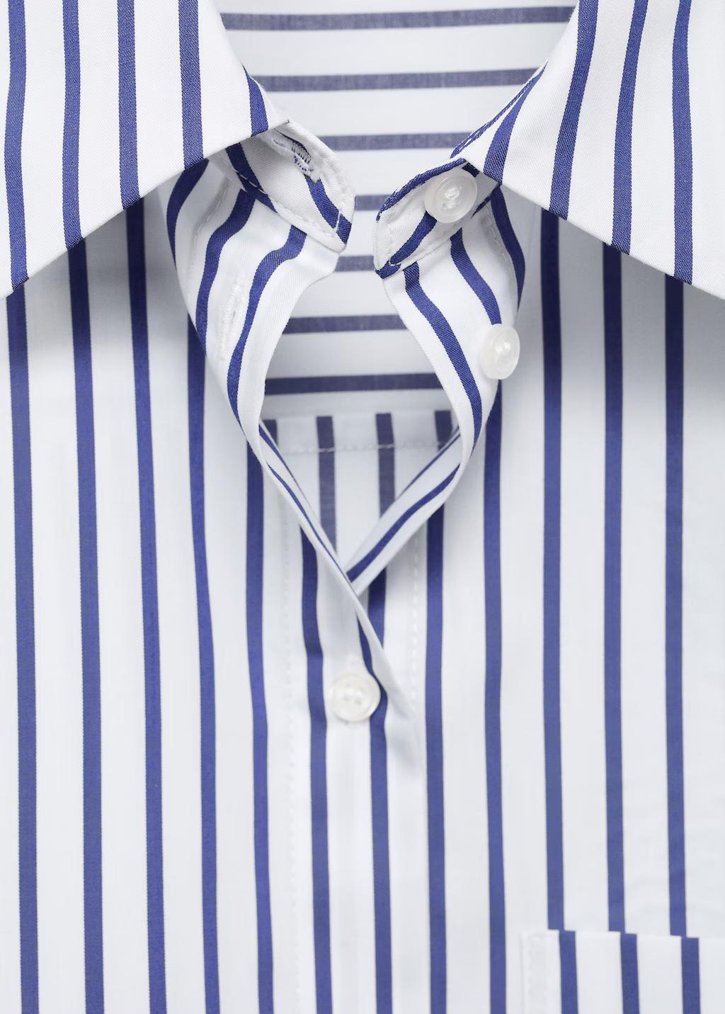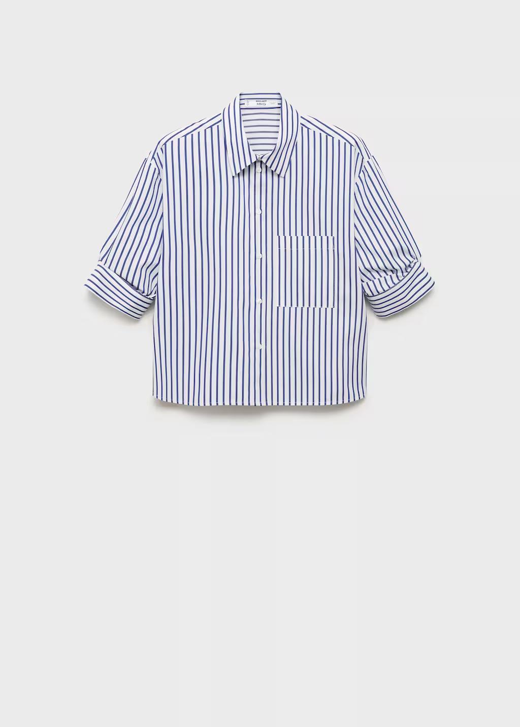 Confeccionada en tejido mezcla de algodón, esta prenda presenta un diseño crop con rayas. Incluye un cuello camisero, manga larga y un bolsillo en el pecho