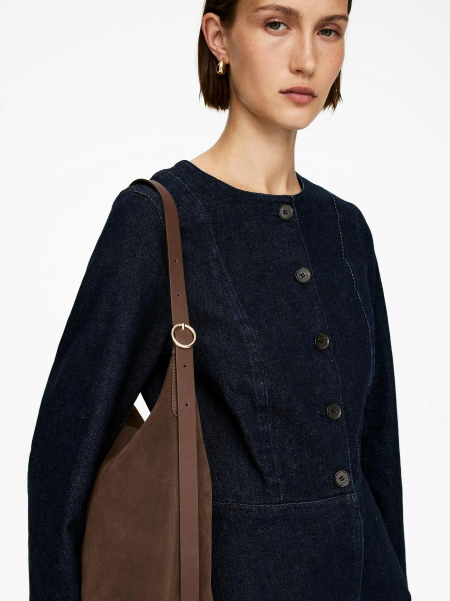 Suede shoulder bag in leather that has undergone a chrome-free tanning process. A clean design featuring a slim adjustable strap with a gold-toned buckle and an inside zip pocket. Can be worn as crossbody or on the shoulder. Width 32 cm, height 28 cm, depth 12 cm. Handle drop 28 cm.ARKET/Women's clothes/Women's bags