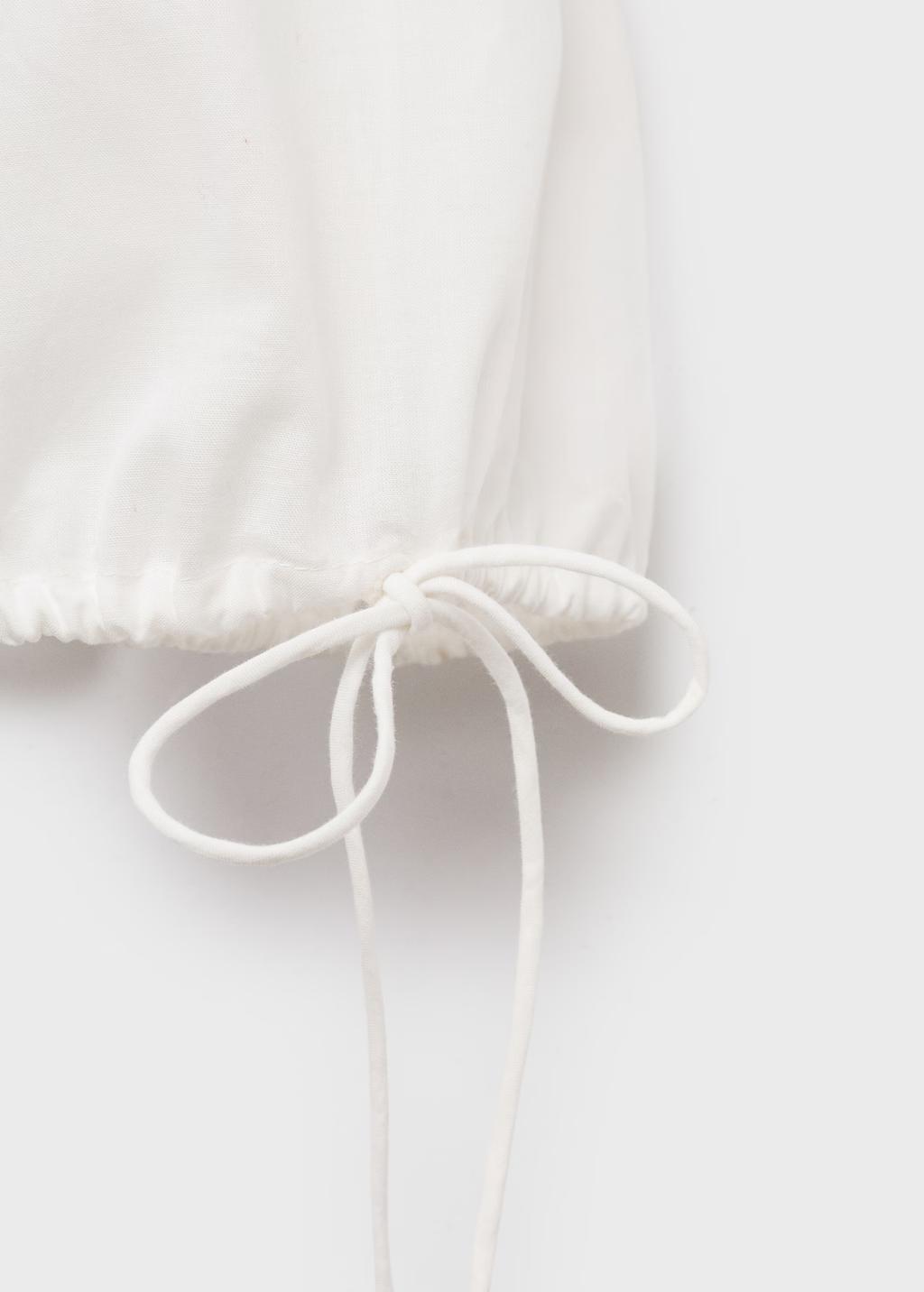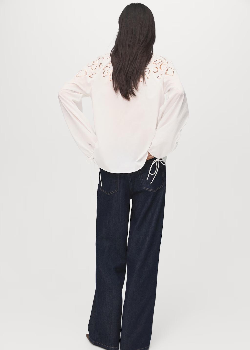 Confeccionada en tejido 100% algodón, esta prenda presenta un diseño recto con cuello redondo y tiras para lazo. Las mangas largas también incluyen tiras para lazo. Detalles bordados completan el diseño