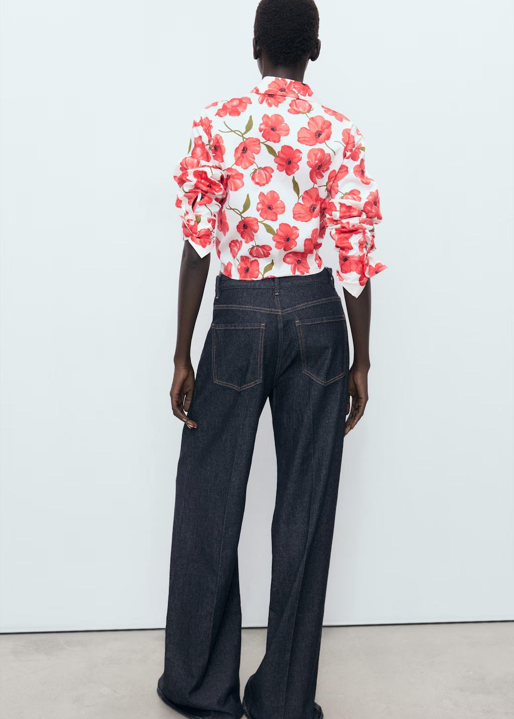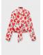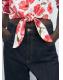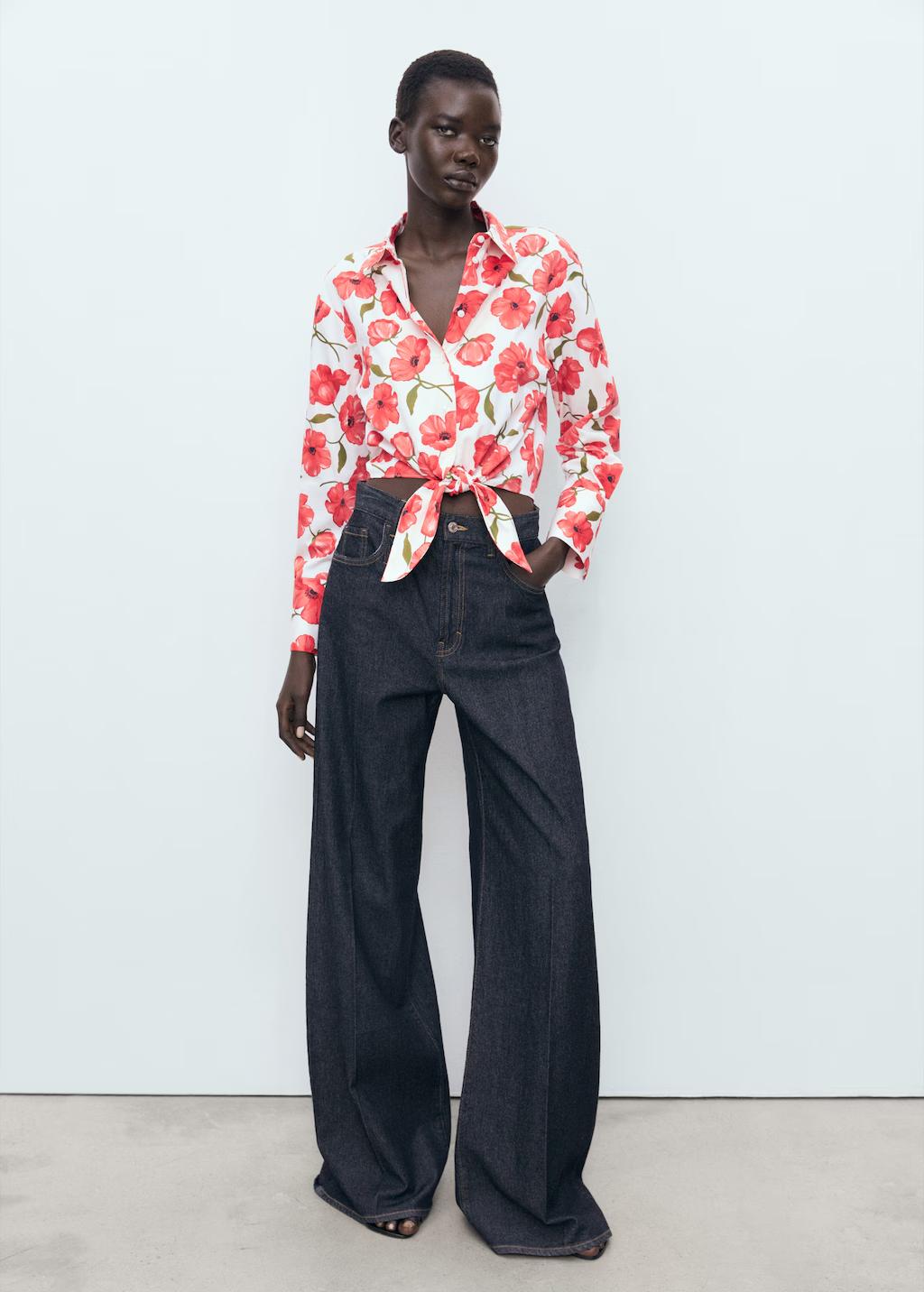 Confeccionada en tejido popelín de algodón, esta camisa presenta un diseño crop y recto con estampado de flores. Incluye cuello camisero, manga larga y un detalle de nudo en el bajo. Cierre de botones en la parte delantera. Disponible en Tallas Plus