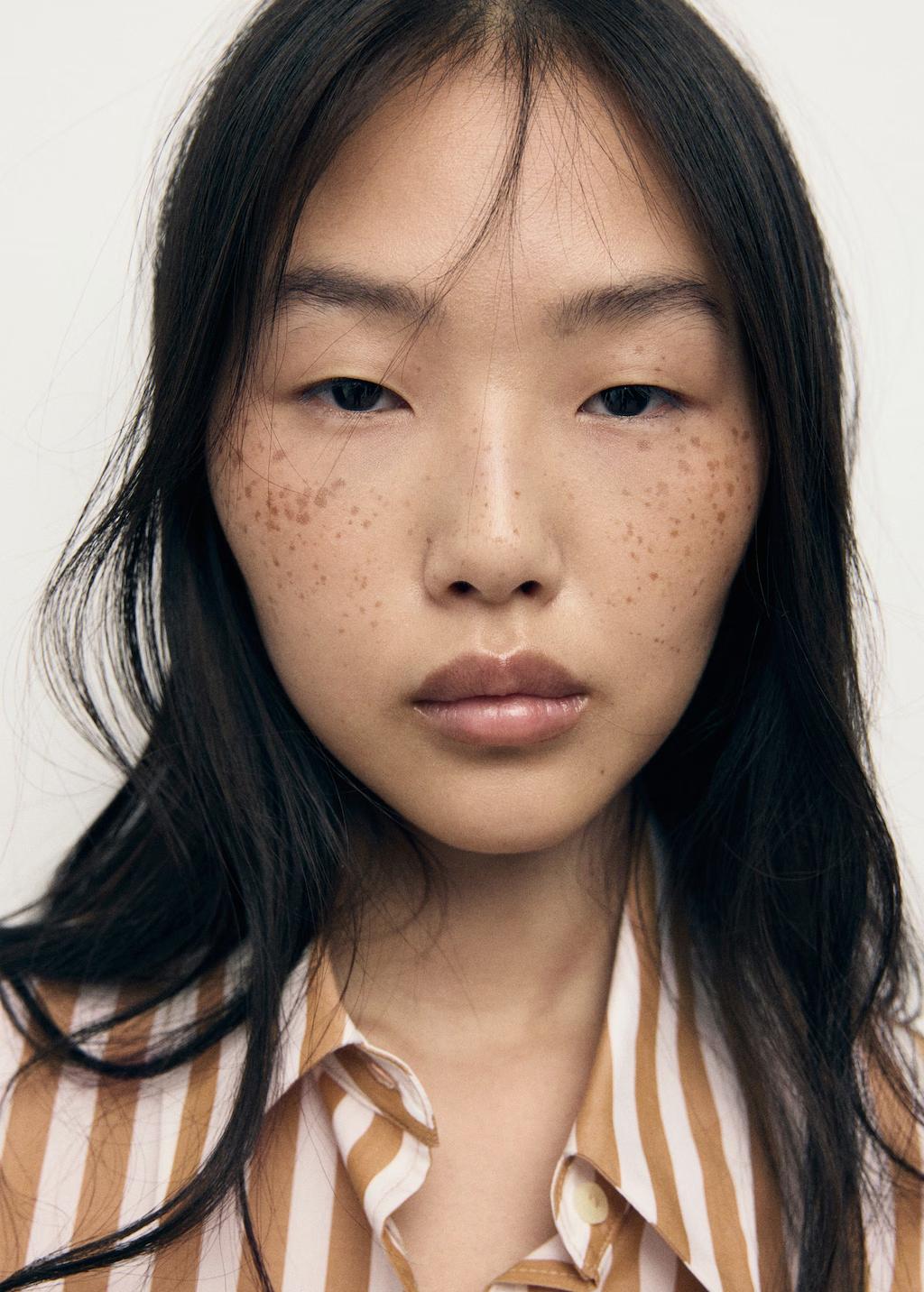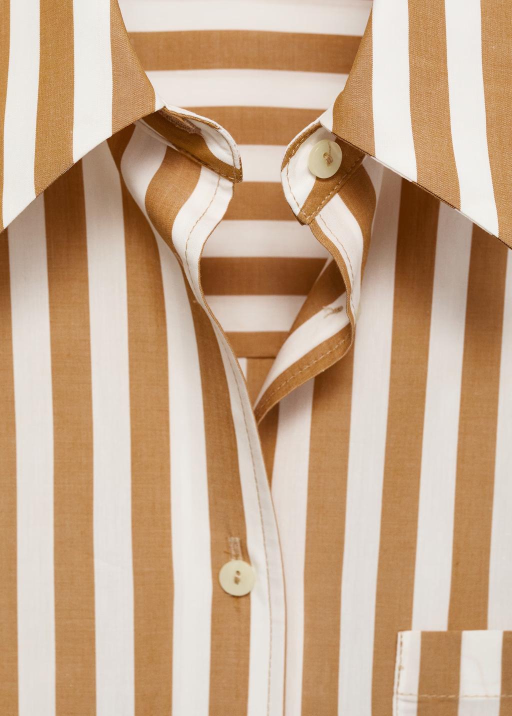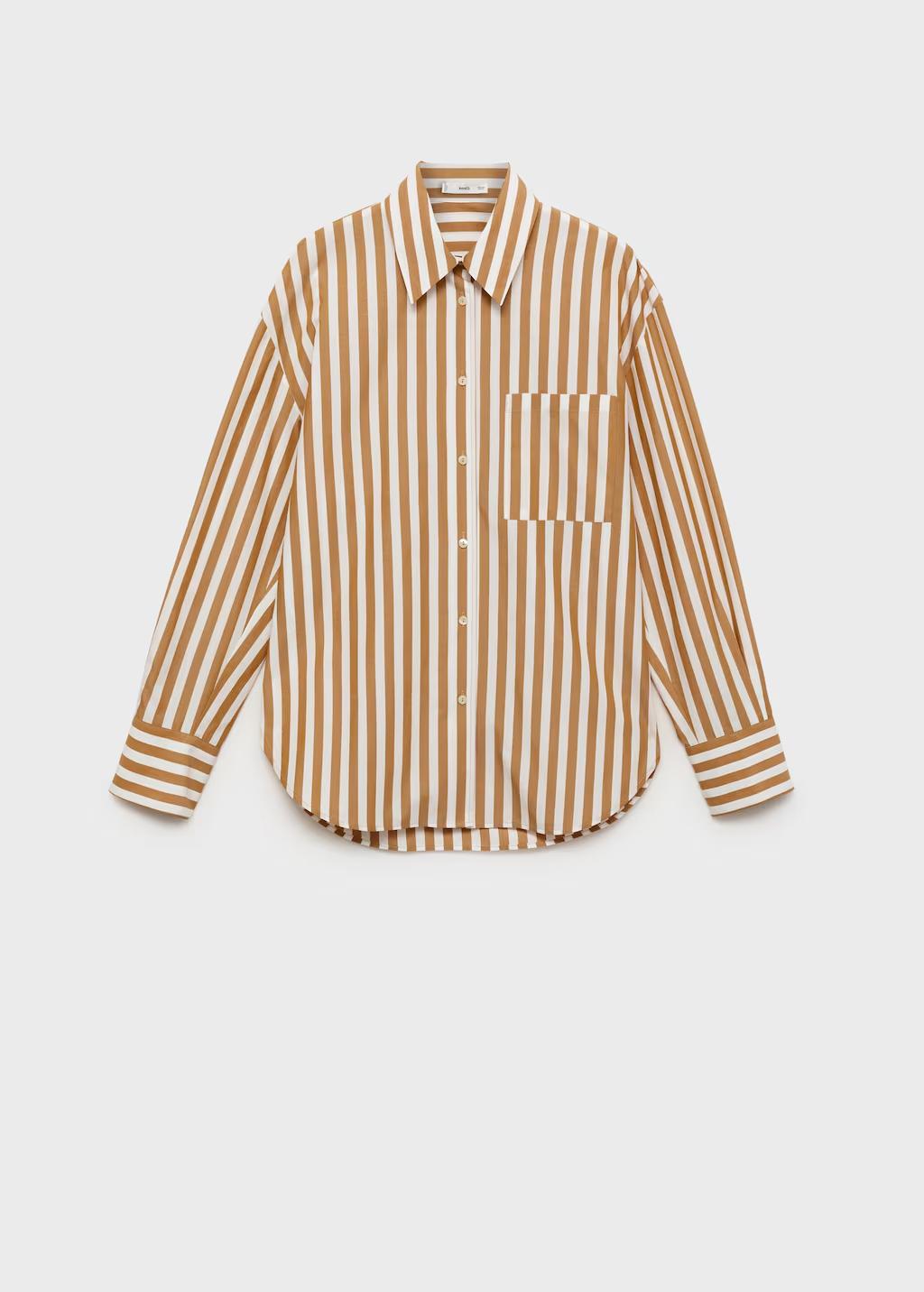 Confeccionada en tejido mezcla de algodón y lyocell, esta prenda presenta un diseño oversize con rayas. Incluye un cuello camisero, manga larga con puños abotonados, bolsillo de parche en el pecho y cierre delantero con botones