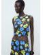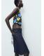 Blusa entallada con estampado floral que combina delicadeza y estilo moderno. Cuello redondo, tirantes anchos y espalda abierta con cierre de lazo. Perfecta para un 'total look' atrevido con la falda a juego
