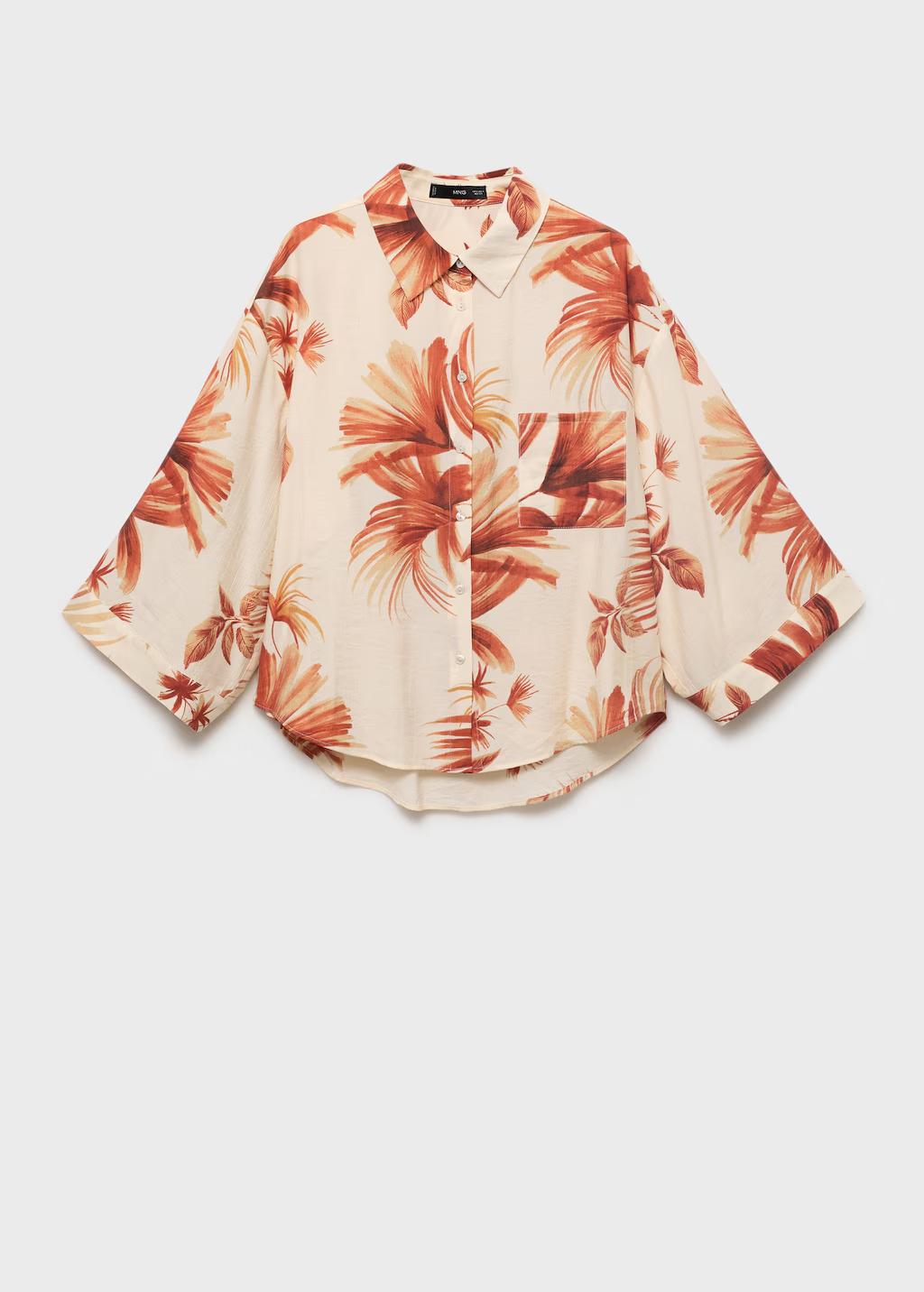 Esta camisa presenta un diseño fluido con un estampado de palmeras en tonos cálidos. Tiene un cuello camisero clásico, con botonadura frontal y mangas amplias tres cuartos que añaden un toque distintivo y cómodo al diseño. Combínalo con el pantalón a juego para crear un 'total look' atrevido